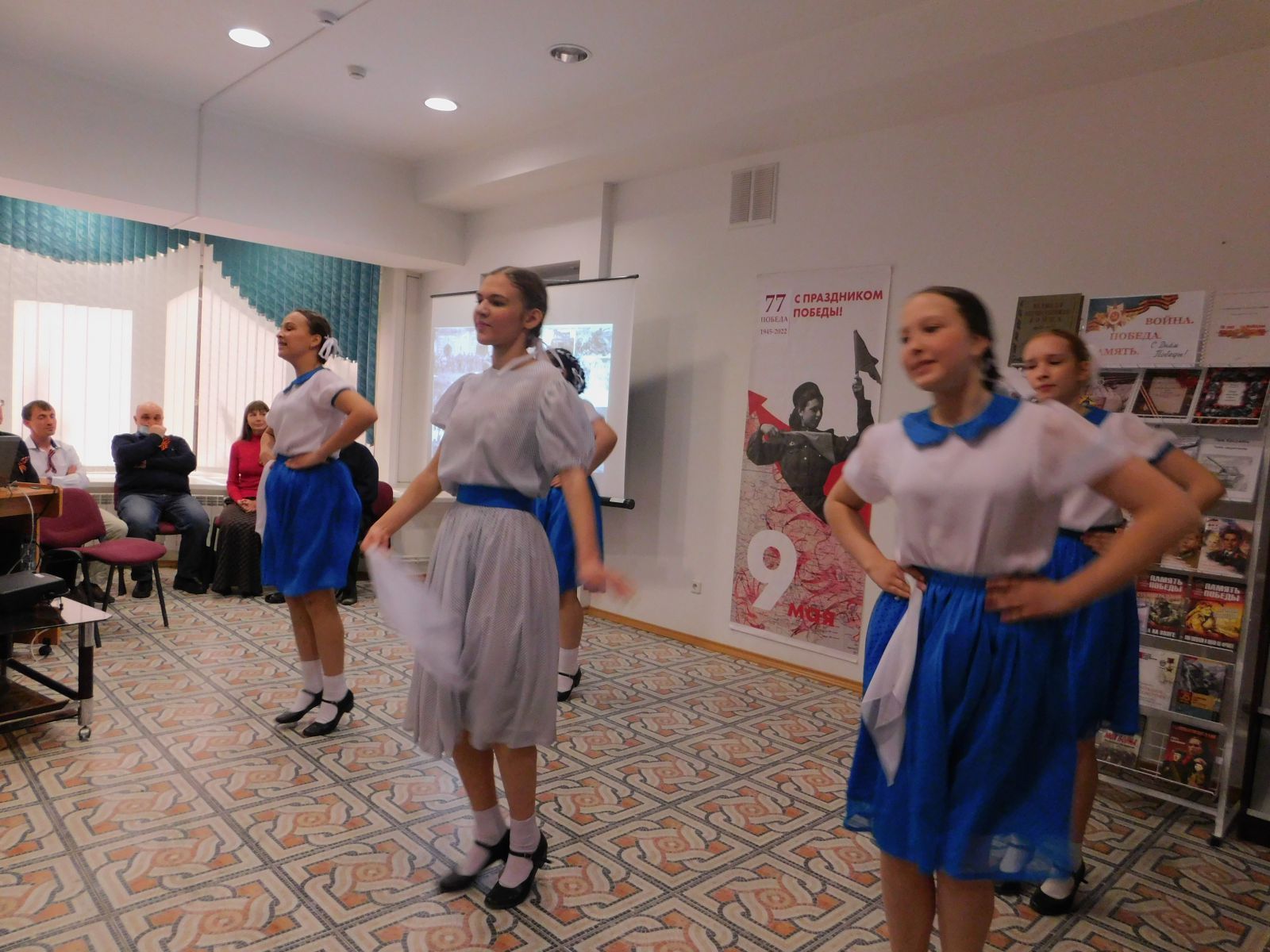 Ведущая мероприятия Елена Хатыпова представила красивый музыкальный номер в исполнении театрального коллектива «Маленькие ангелы». Очень пронзительно были прочитаны стихотворения Юлии Друниной «Зинка», «Новогодние пельмени» в исполнении учащихся МУДО «Детско-юношеский центр Фрунзенского района г. Саратова».