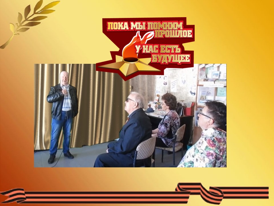 Вечер «Не смолкнет слава тех великих лет…» посвящен празднику Великой Победы советского народа, отстоявшего независимость России в неравной битве с немецко-фашистскими захватчиками. Читатели поделились историями о близких и знакомых, защищавших нашу Родину; вспомнили любимые стихи (в том числе собственного сочинения) и песни времен Великой Отечественной войны, песни о Дне Победы и мире, о весне и любви.