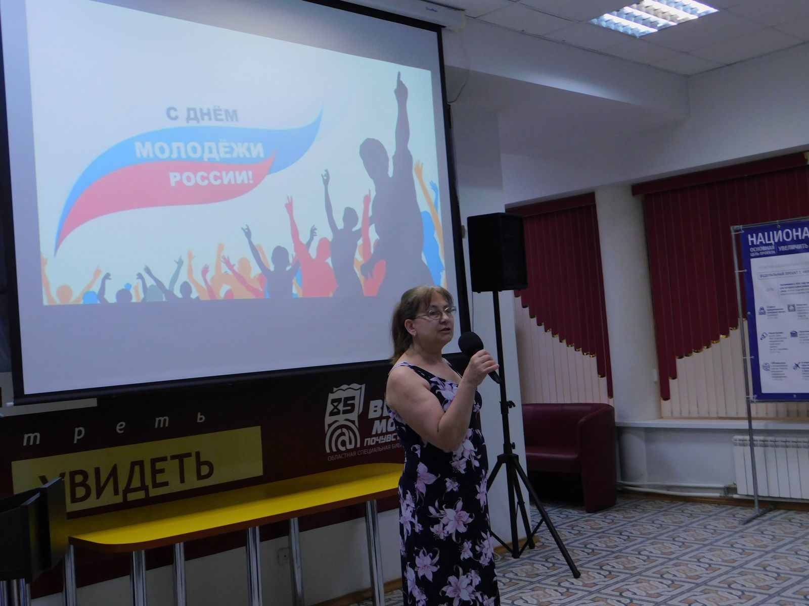 Ведущая мероприятия Елена Хатыпова напомнила всем присутствующим историю праздника – Дня молодёжи – и предложила совершить небольшой экскурс в прошлое. Читателям напомнили о событиях в истории страны, свершениях, которые стали возможны благодаря молодёжи, её труду, самоотверженности, идеям – великие научные и технические открытия, освоение космического пространства, развитие сельского хозяйства, освоение новых территорий, проведение фестивалей молодёжи и студентов, стройки века, Летние Олимпийские игры 1980 года, развитие кинематографа, эстрады, поэзии – всё это невозможно без молодых!