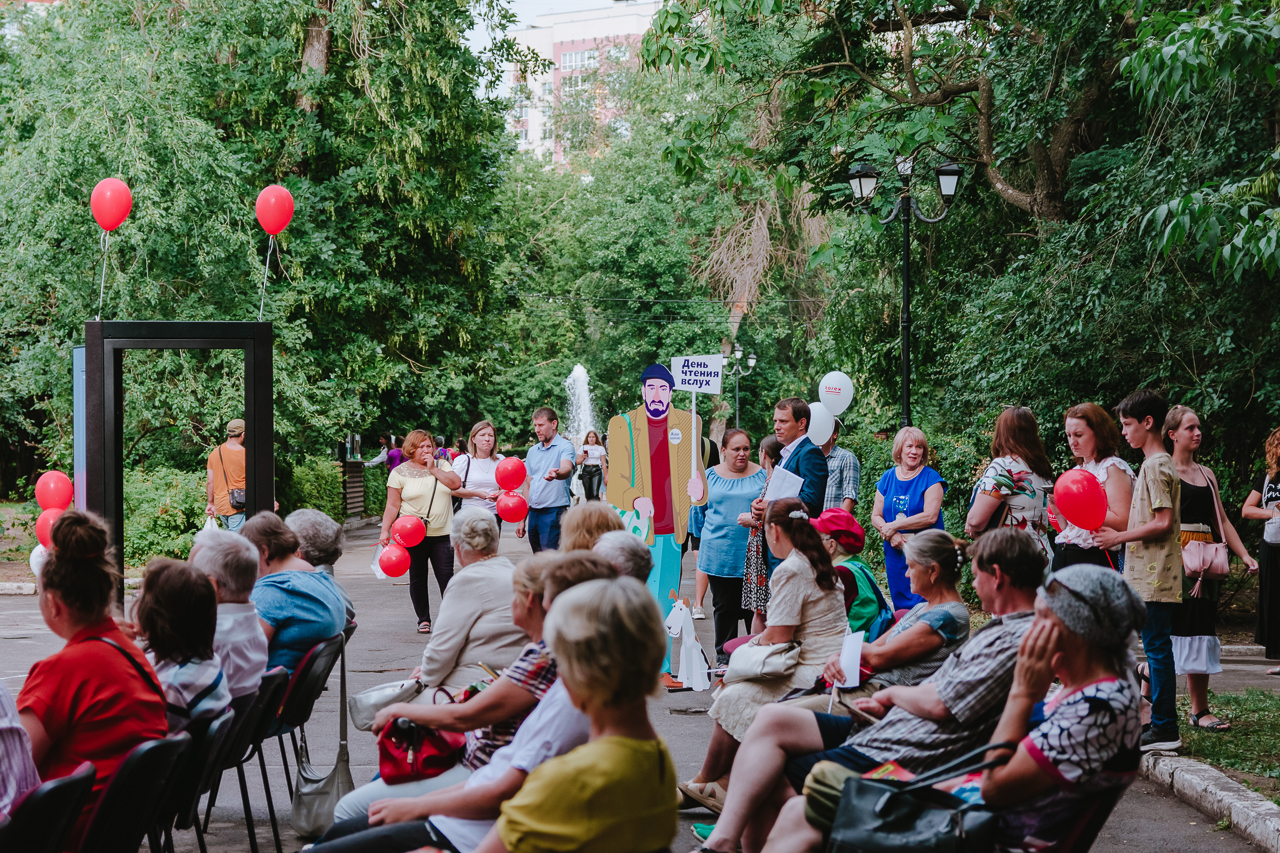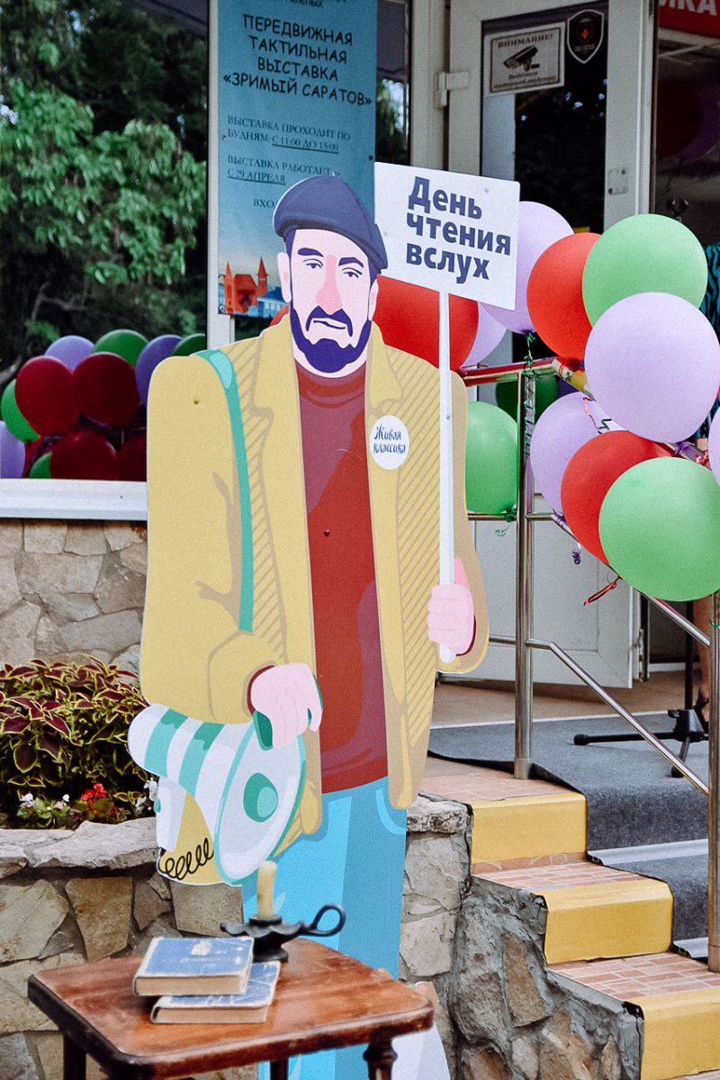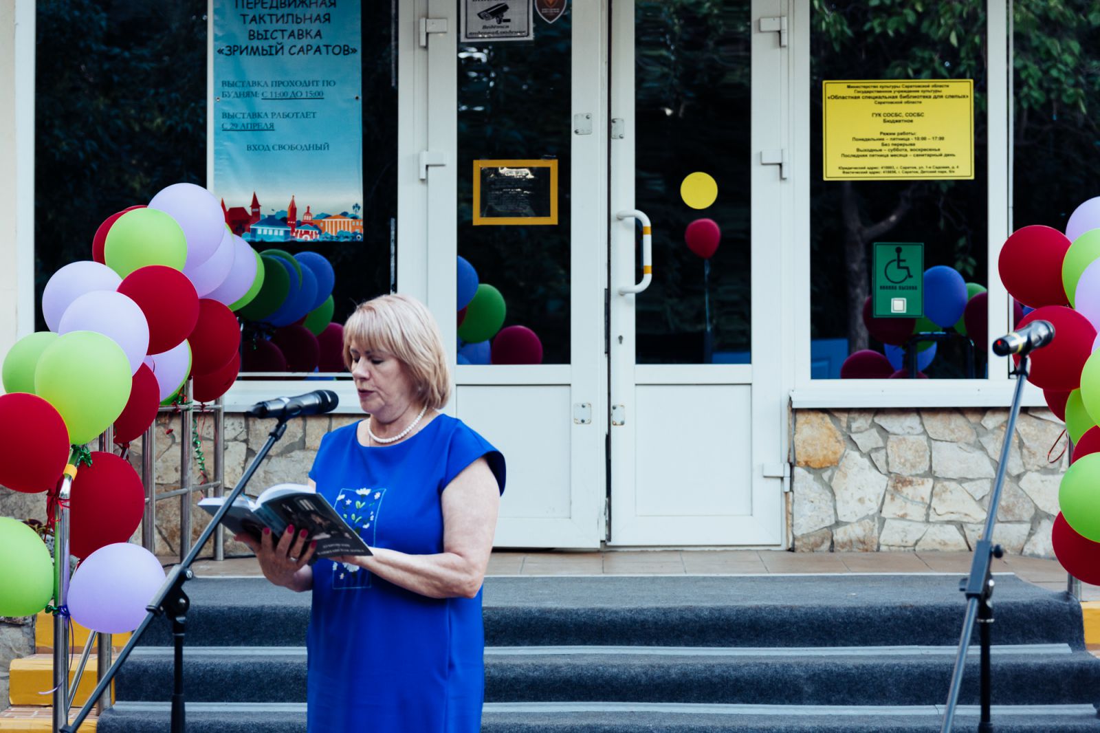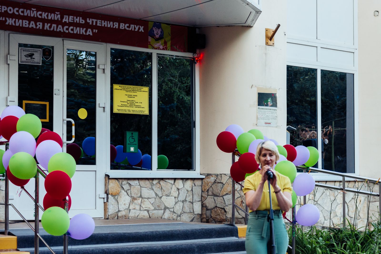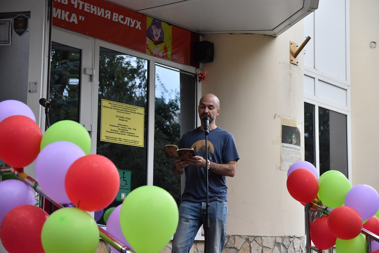 Областная специальная библиотека для слепых стала главной площадкой. Праздник чтения начинался с оборудованной дверью площадкой, которая символизировала вход в страну чтения. Импровизированная сцена была украшена многочисленными шарами. Участников и гостей встречали ростовые фигуры писателей – А.С. Пушкина и С.Д. Довлатова.