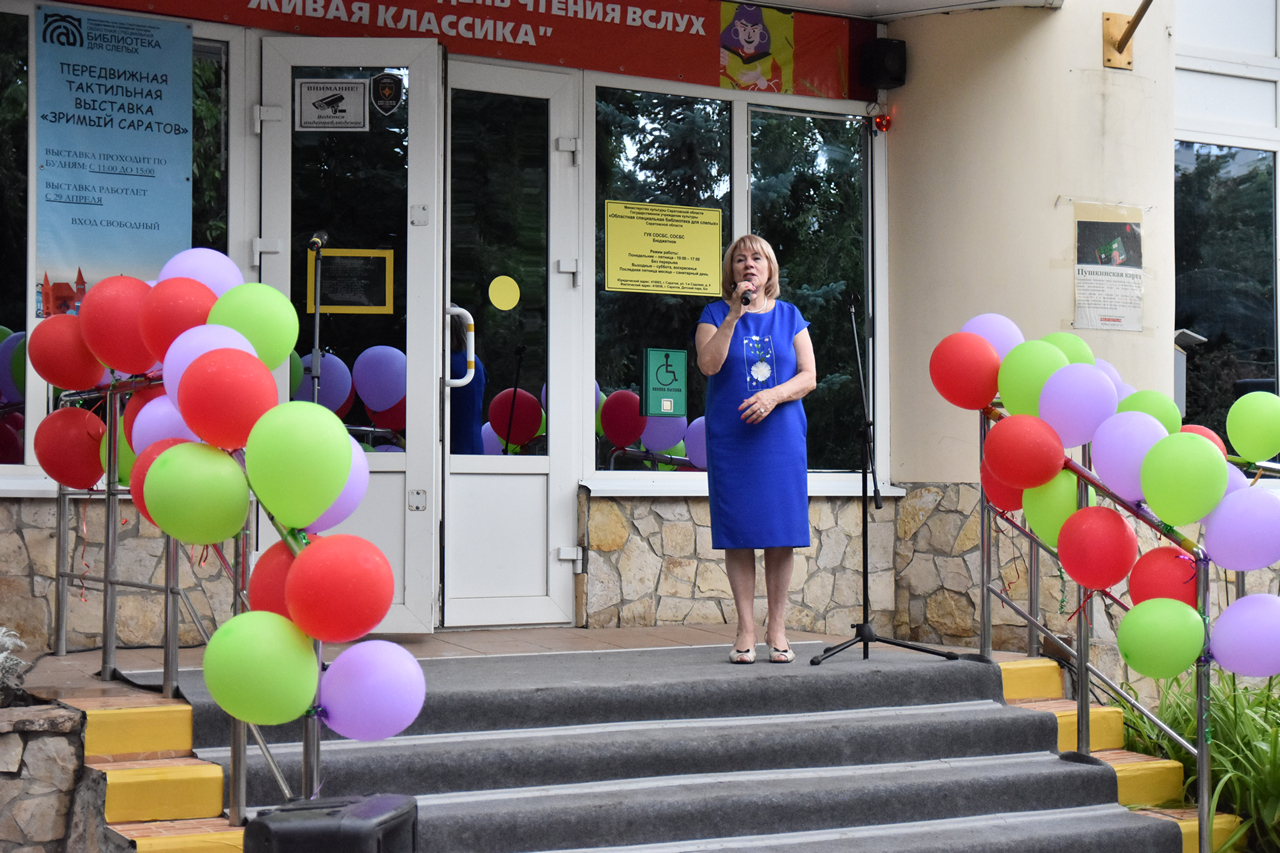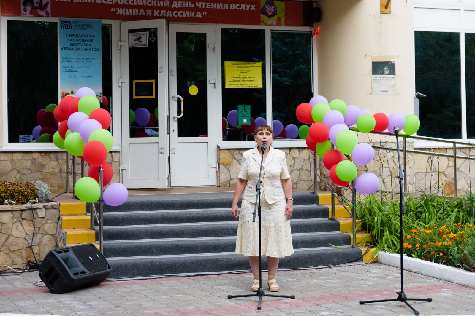 Директор библиотеки Ольга Ивановна Новикова приветствовала жителей Саратова и Энгельса, участников Первого Всероссийского дня чтения вслух «Живая классика» и обозначила, что на сегодняшним празднике мы вместе - люди с ограничениями по зрению и без ограничений, люди разных возрастов - будем читать вслух произведения поэтов, писателей, русских классиков. Это большое событие станет частью юбилейных мероприятий - Областная специальная библиотека для слепых в этом году празднует 85 лет.