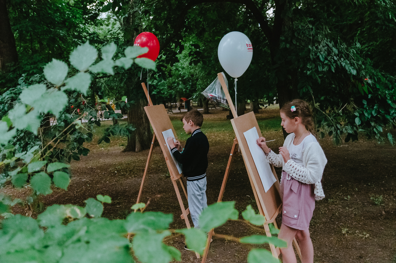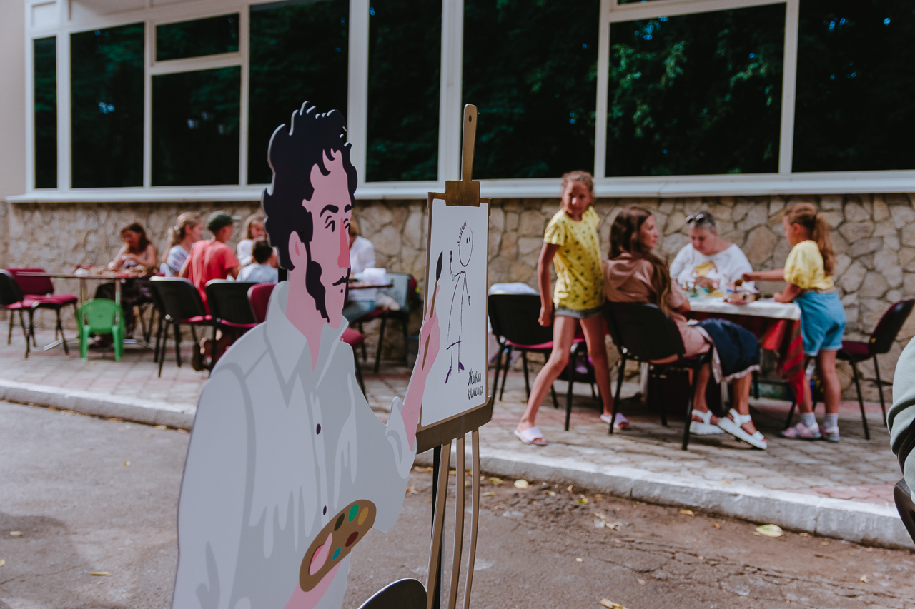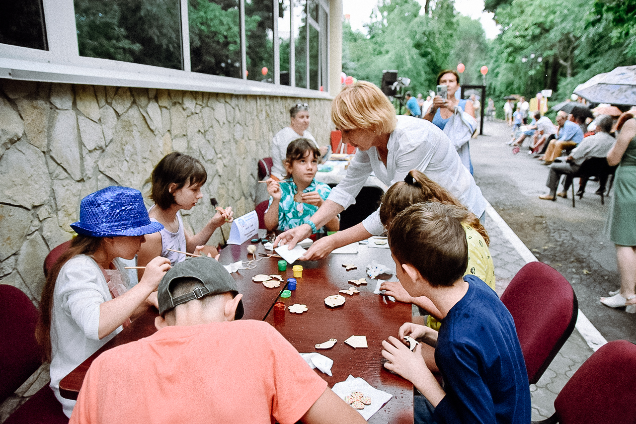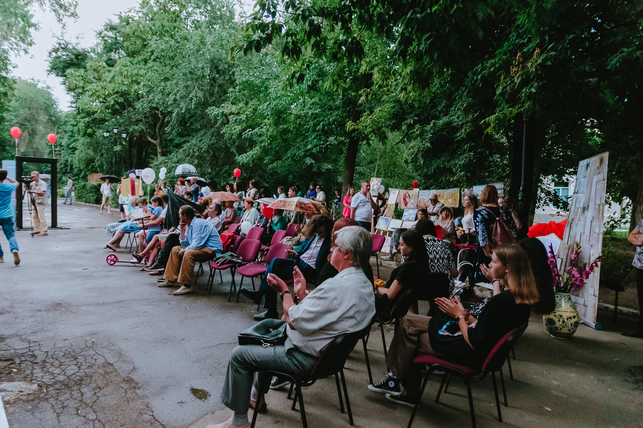 На открытой площадке работал пленэр художников, дети и взрослые рисовали фрагменты мероприятия, чтения и концертных номеров.