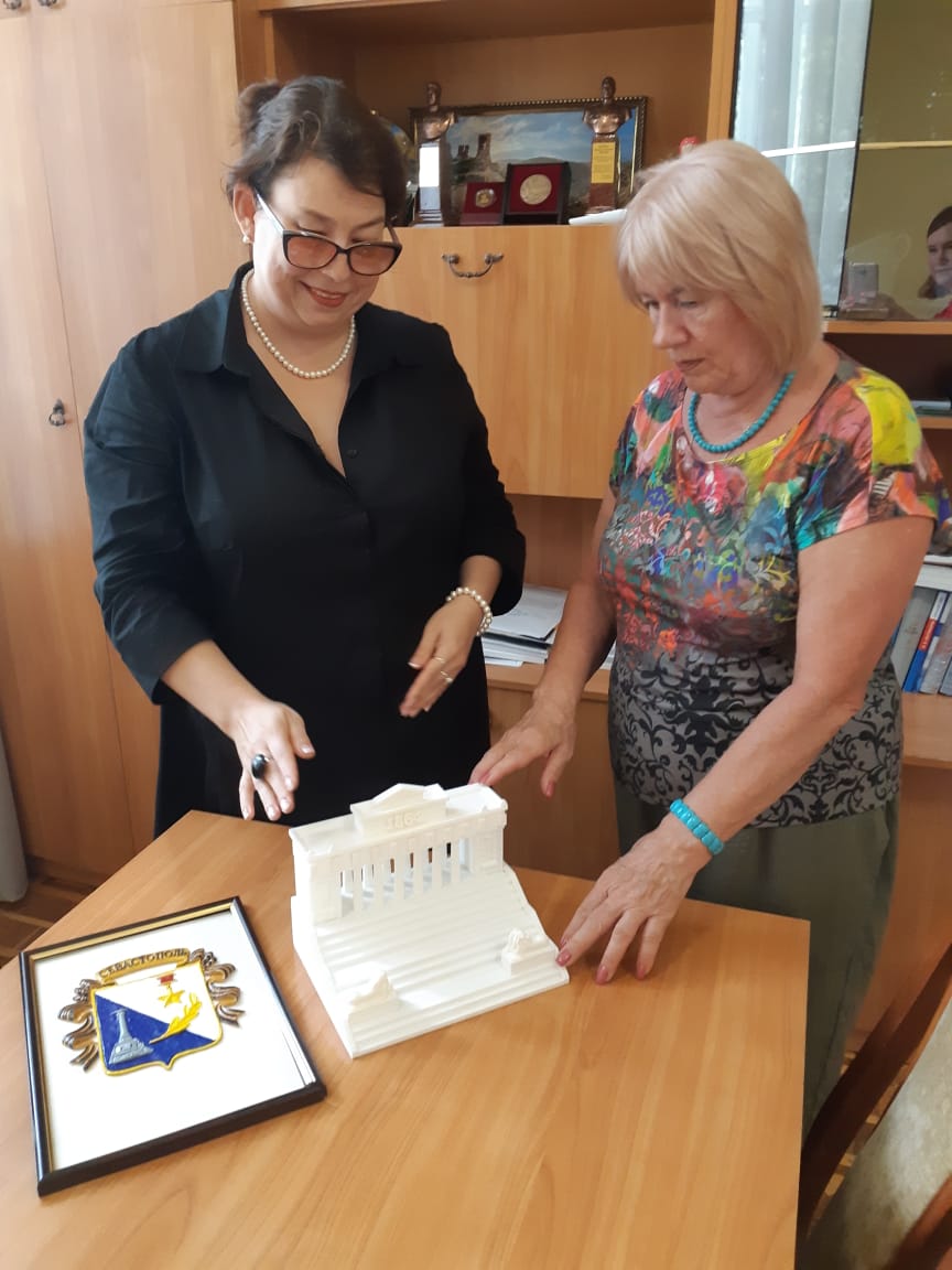 3 августа 2022 года директор ГУК «Областная специальная библиотека для слепых» Ольга Новикова посетила Отдел для незрячих и слабовидящих – структурное подразделение Центральной городской библиотеки им. Л. Н. Толстого (г. Севастополь) с целью передачи опыта реализации проекта «Зримый Саратов» и рассказала о создании тактильного Герба Города-Героя Севастополя заместителем директора по развитию ГУК «Областная специальная библиотека для слепых» Ксенией Ханбековой. Незрячие жители города Севастополя смогут «увидят» герб города в адаптированном формате.
