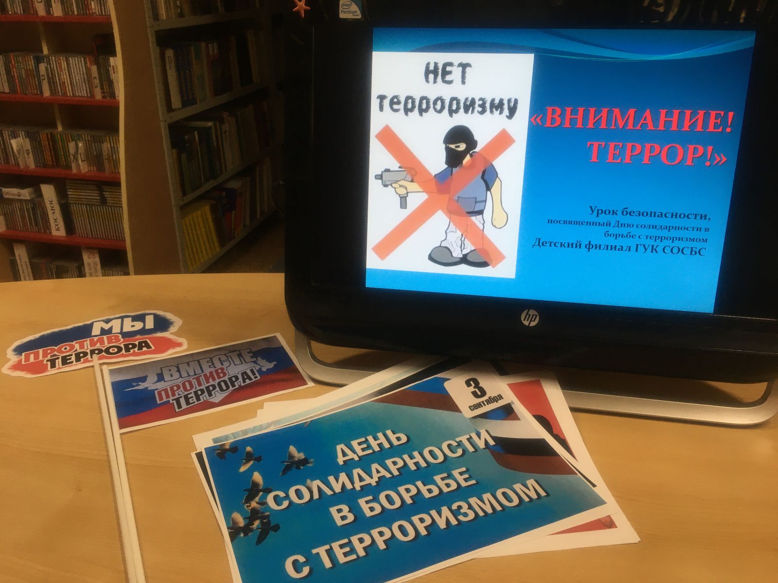 Сегодня в Детском филиале Областной специальной библиотеки для слепых прошёл урок безопасности «Внимание! ТЕРРОР!», посвящённый Дню солидарности в борьбе с терроризмом и 18-ой годовщине трагических событий в городе Беслан.
