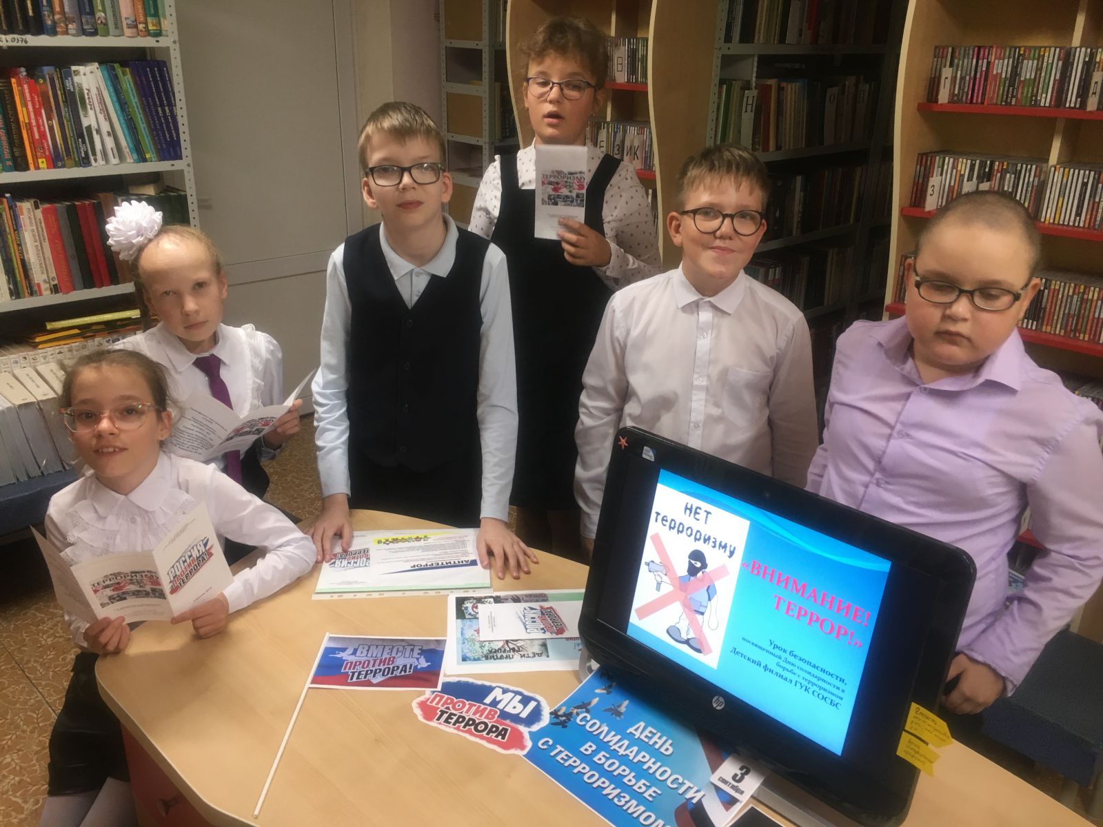 В мероприятии приняли участие ребята из начальных классов ГБОУ СО «Школа-интернат АОП № 3 города Саратова». Состоялся разговор о проблеме терроризма и экстремизма в современном мире. Читателям рассказали о хронике событий в Буденовске, Беслане и террористическом акте на Дубровке (г. Москва), подчеркнув то горе и страдание, которое перенесли мирные люди, в числе которых были и дети.