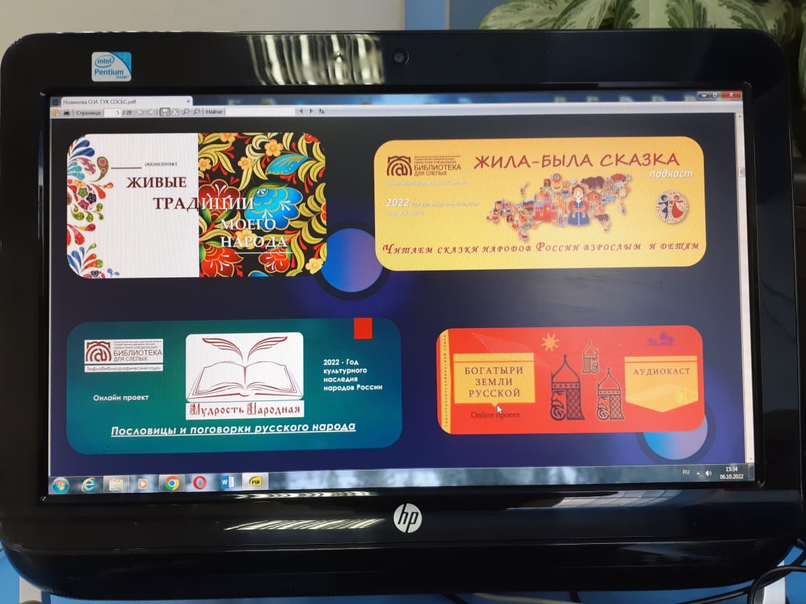 Ольга Ивановна обозначила, что самым востребованным среди людей с инвалидностью по зрению является ежегодный областной фестиваль творчества инвалидов по зрению, который библиотека организует совместно с министерством культуры Саратовской области. В текущем году это областной фестиваль «Недаром помнит вся Россия про день Бородина!», посвящённый 210-летию Бородинского сражения Отечественной войны 1812 года и 185-летию создания стихотворения М.А. Лермонтова «Бородино».