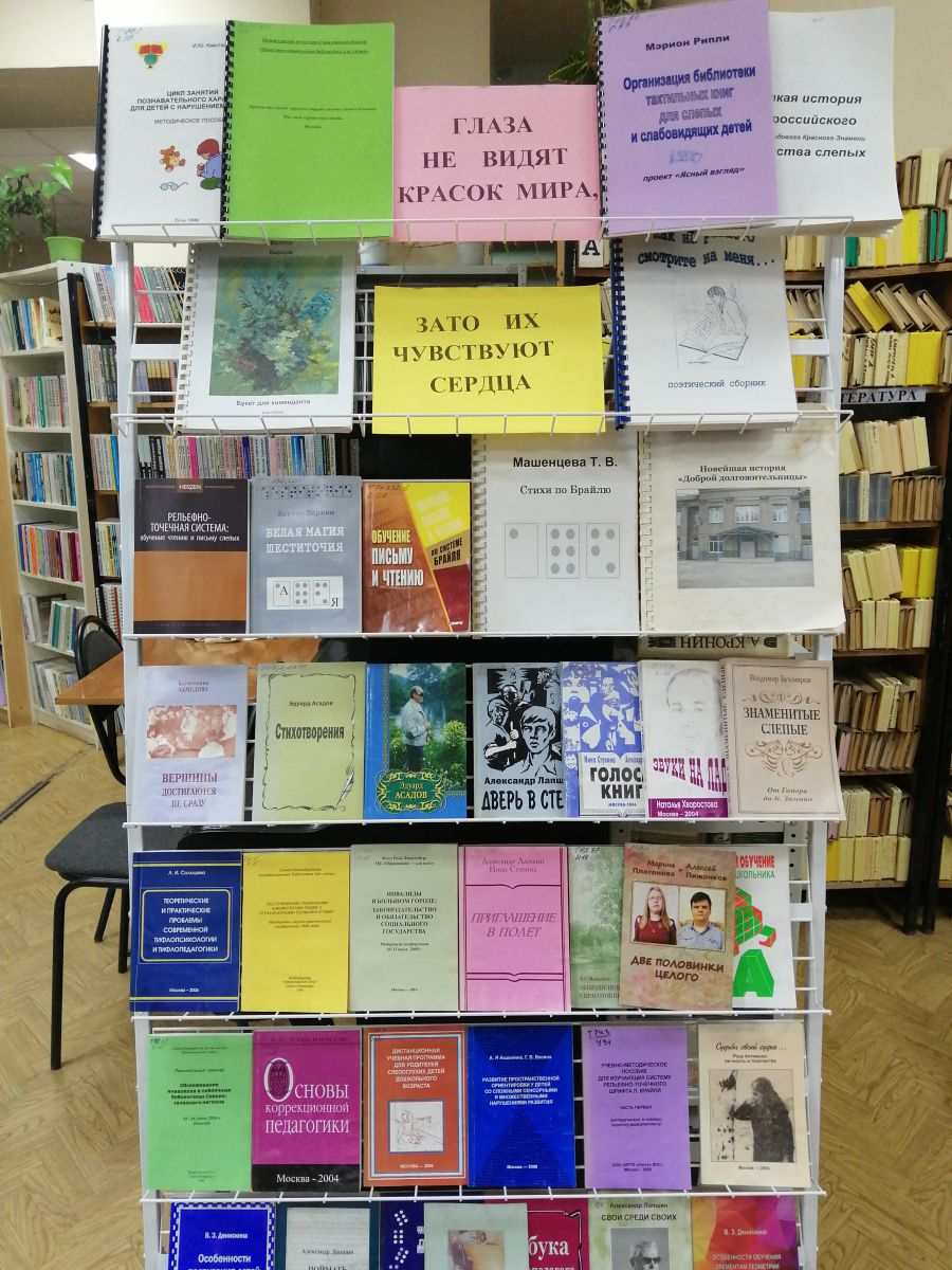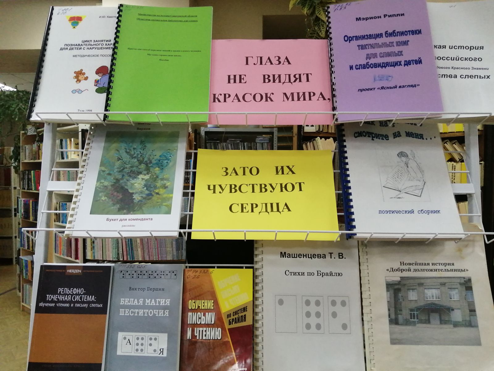 В библиотеке открыта информационная выставка к месячнику белой трости «Глаза не видят красок мира, зато их чувствуют сердца».