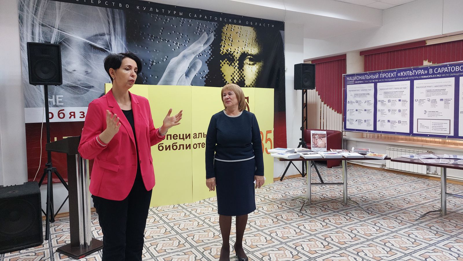 Директор Областной специальной библиотеки для слепых Ольга Ивановна Новикова тепло поприветствовала гостей и сказала, что для нас в настоящее время основное значение имеет взаимодействие и сотрудничество в сфере культуры – об этом же говорилось на прошедшей накануне встрече Ларисы Ищенко с министром культуры Саратовской области Наталией Юрьевной Щелкановой. Наталия Юрьевна представила деятельность учреждений культуры по национальному проекту «Культура», как реализуется «Стратегия развития библиотечного дела в Российской Федерации на период до 2030 года», представила яркие фестивали и конкурсы, проходящие на территории Саратовской области.