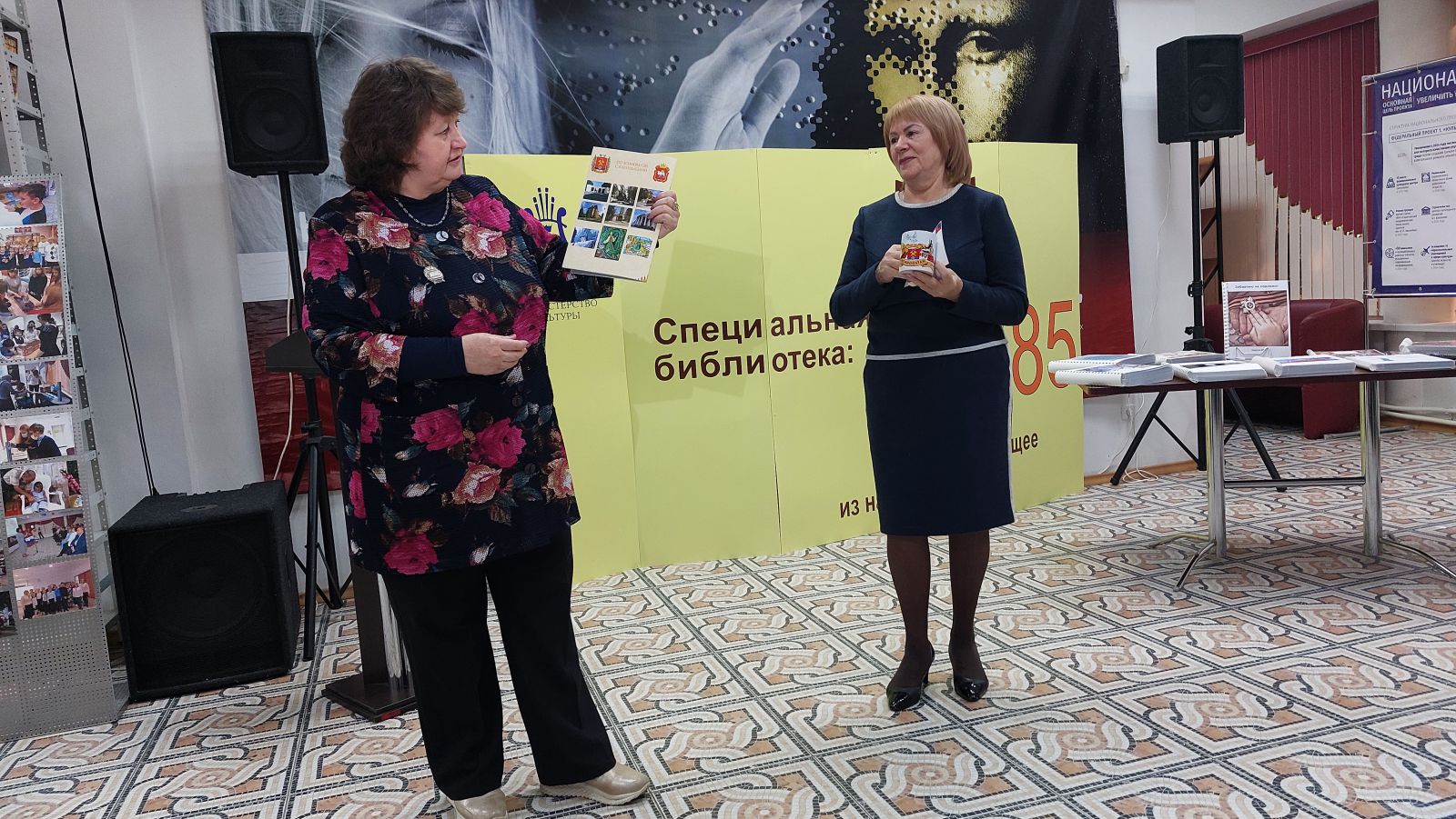 25 октября Областную специальную библиотеку для слепых посетили гости из Донецкой Народной Республики: Лариса Ивановна Ищенко – начальник отдела культуры администрации города Ясиноватая ДНР, Заслуженный работник культуры ДНР и Ольга Николаева Кильченко – корреспондент Первого республиканского телеканала ДНР.