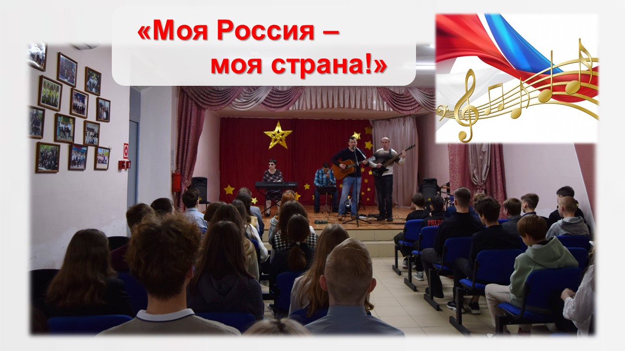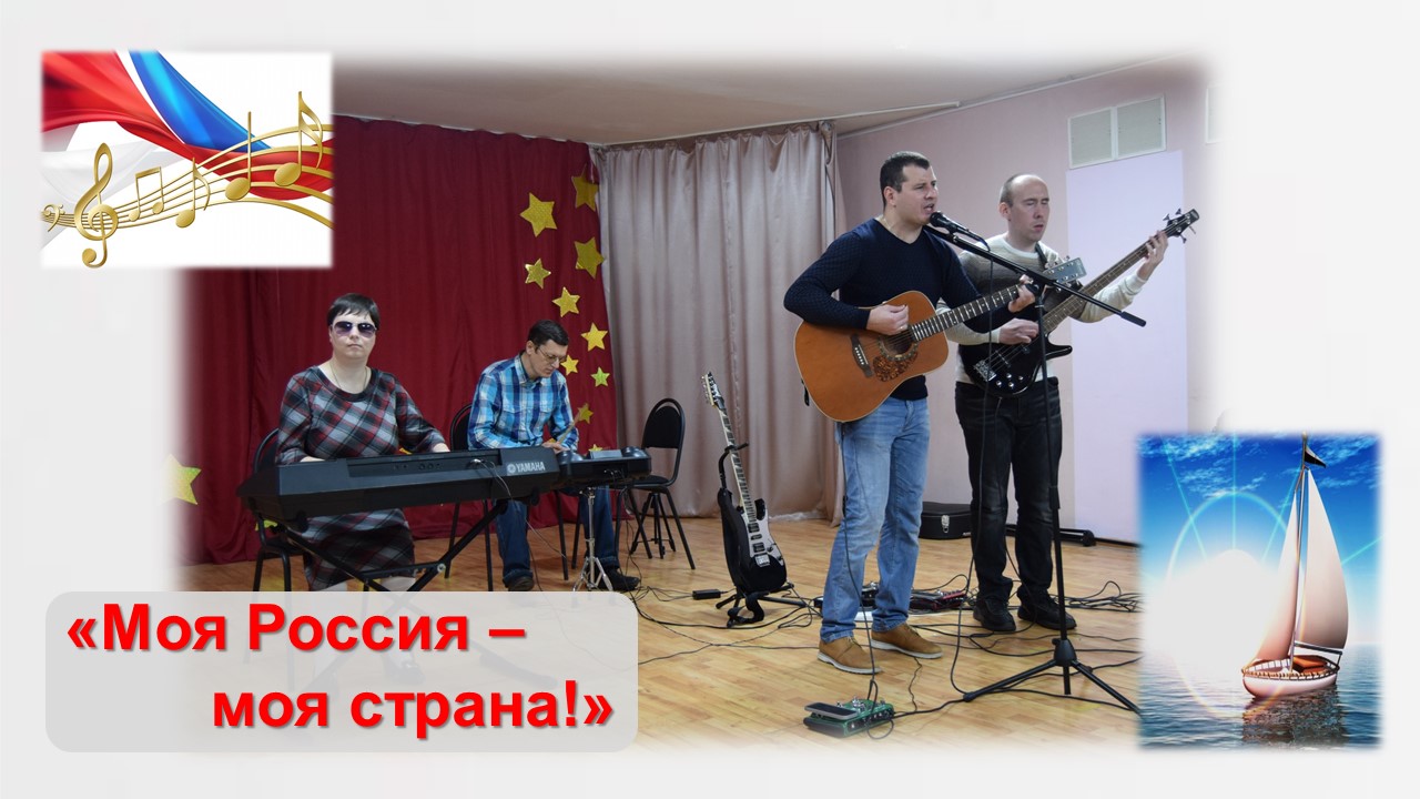 Эстрадная группа (Дмитрий и Александра Скоробогатовы, Андрей Кандалов, Дмитрий Шапошников) подготовила для школьников музыкально-патриотическую программу «Моя Россия - моя страна!».