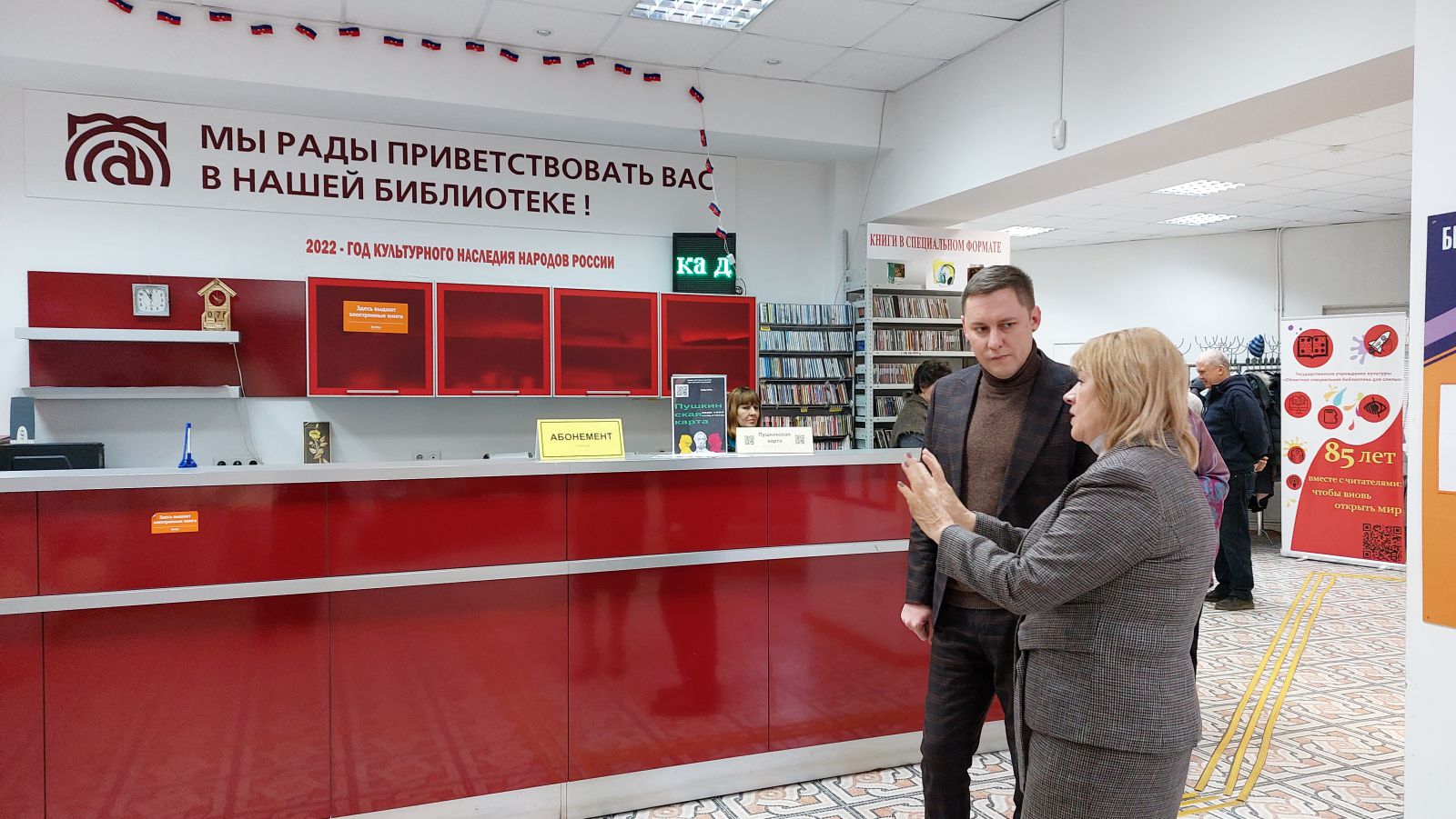 Александр Блатман пообщался с молодыми сотрудниками библиотеки, поинтересовался, нравится ли им работать, пожелал всему коллективу творческих успехов во всех начинаниях.