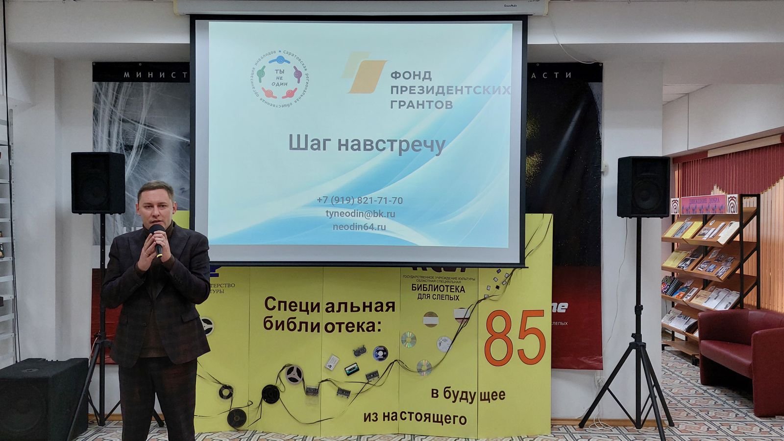 Мероприятие открыл Председатель комитета по образованию и культуре Саратовской областной Думы Александр Блатман. Перед началом мероприятия Александр Андреевич с большим интересом знакомился с библиотечно-информационным обслуживанием незрячих и слабовидящих людей. Познакомился с работой Центра адаптивного чтения, увидел самое современное техническое оснащение библиотеки. Подробно ознакомился с работой Детского центра, услугами тифлокомментирования, работой Центра социально-значимой и правовой информации. Осмотрел рабочее место инвалида и читающую машину. Получил информацию о том, как незрячие узнают информацию о событиях в стране и мире через громкие чтения периодических изданий. Библиотека выполняет важную социальную роль и строит общество равных возможностей в регионе, предоставляя свободный доступ к информации, осуществляет надомное обслуживание.
