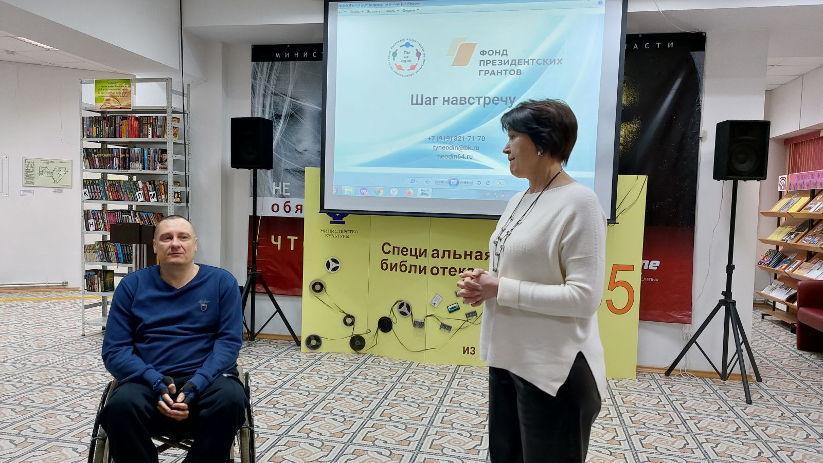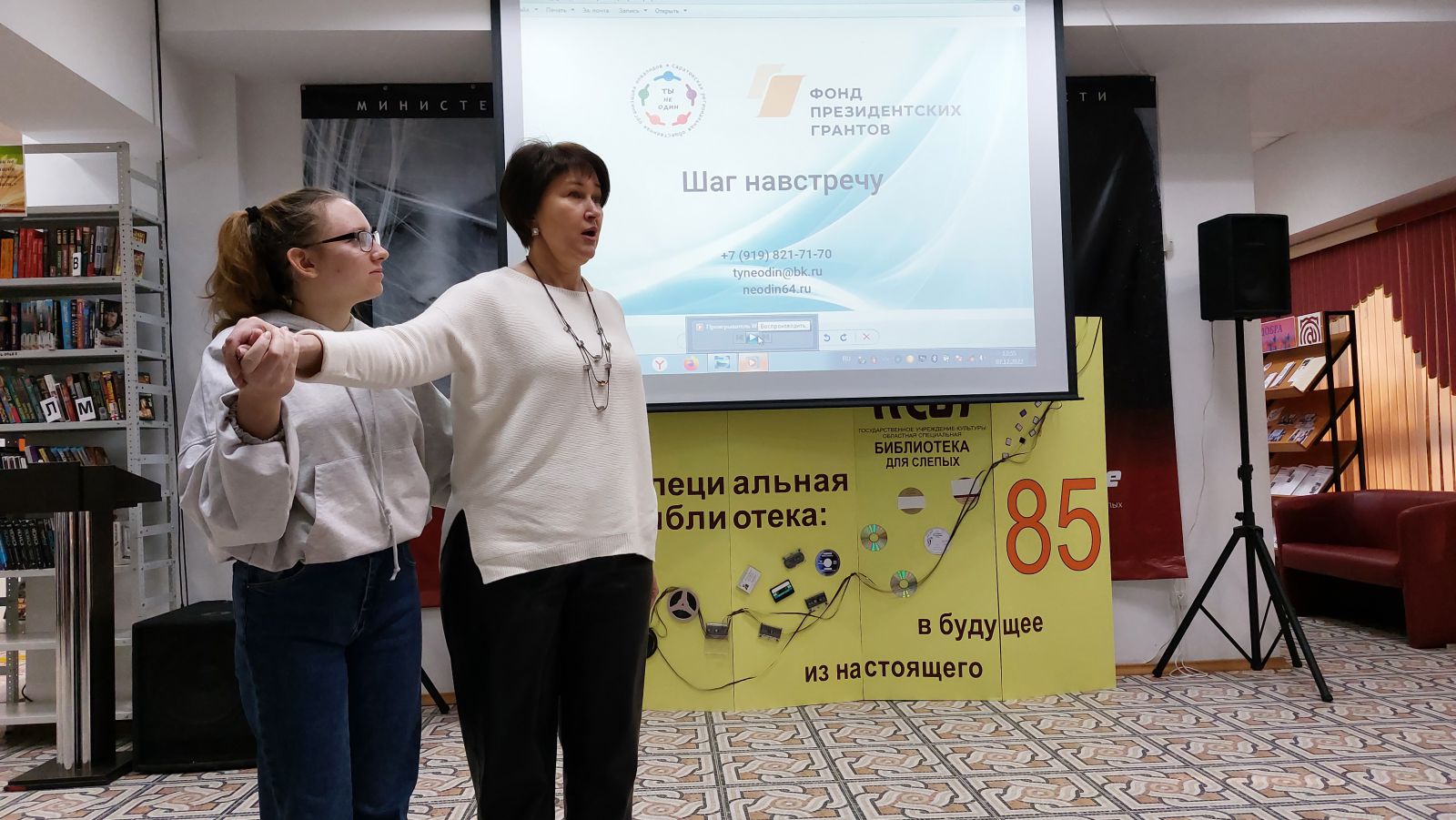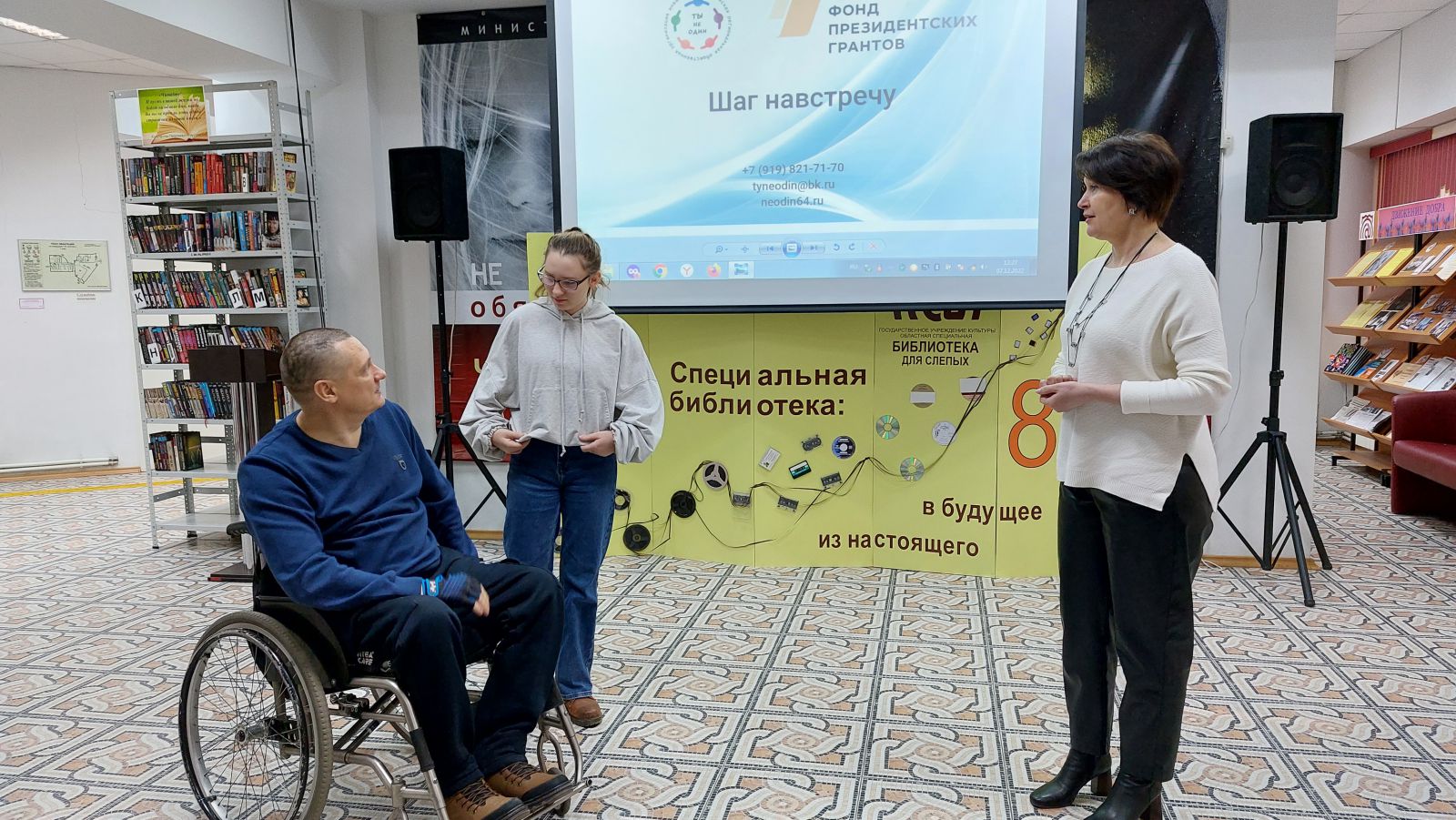 Особое внимание в ходе встречи было уделено проектам, реализуемым библиотекой – «Зримый Саратов», «Вижу город», «Прикоснись к театру», «Вижу космос», «Музей для всех», «Кино на равных».