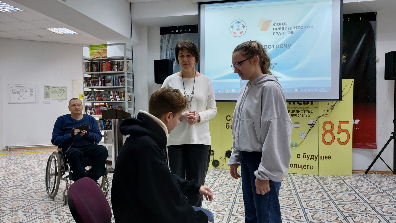 Директор ГУК «Областная специальная библиотека для слепых» Ольга Новикова поприветствовала участников мастер-класса, сказала, что каждый хочет реализовать свои возможности, но есть люди, чьи возможности ограничены, и есть те, кто помогает увидеть им красоту и многообразие мира. В нашем случае это не только Областная специальная библиотека для слепых с её универсальным фондом в адаптированных форматах и многообразием услуг, но и наши волонтёры.
