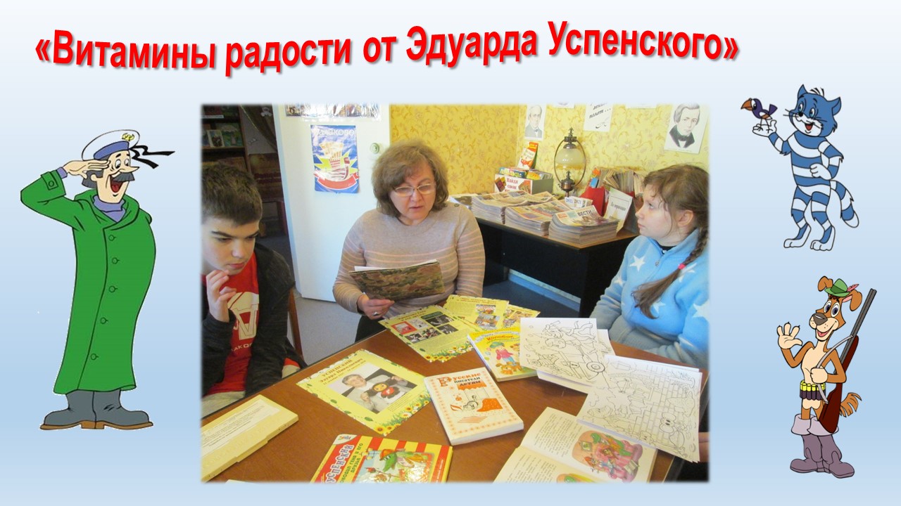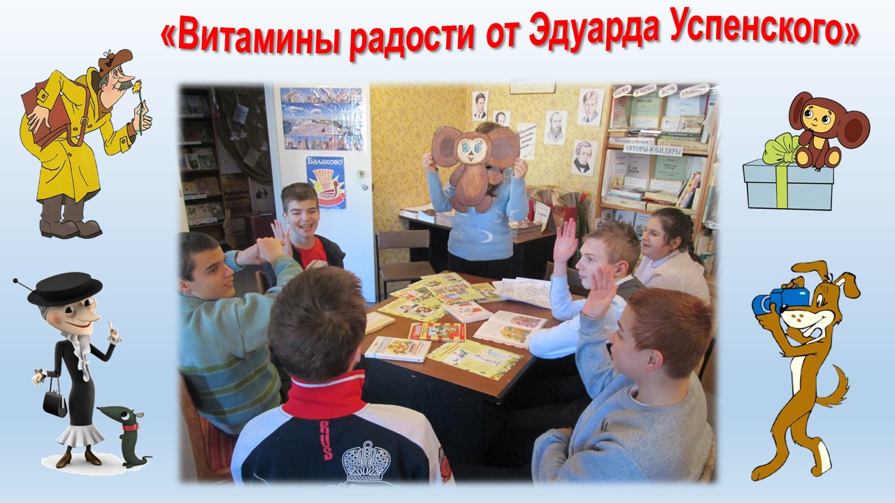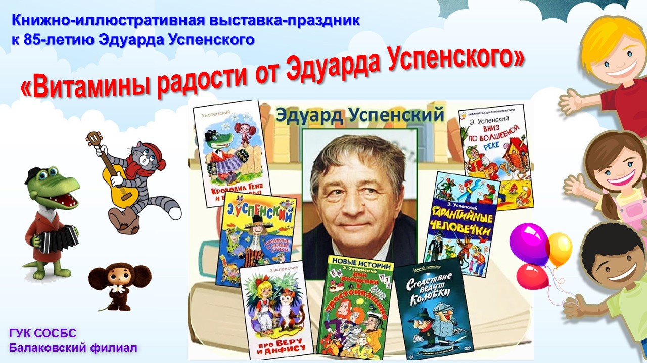 В Балаковском филиале Областной специальной библиотеки для слепых работает выставка-праздник «Витамины радости от Эдуарда Успенского», посвященная 85-летию Эдуарда Успенского.