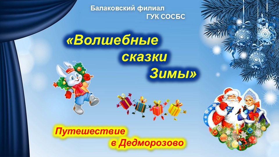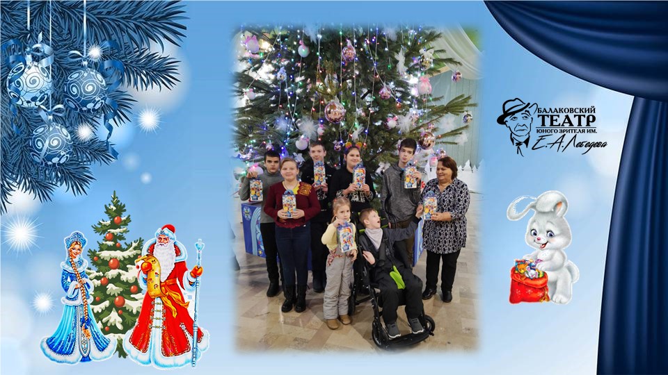 Новый год и Рождество для большинства детей и взрослых – самые любимые праздники. Самые красивые и добрые. Они помогают верить в лучшее и даже в чудо. В волшебной сказке удалось побывать читателям Балаковского филиала Областной специальной библиотеки для слепых: на новогоднее представление их пригласил Балаковский ТЮЗ им. Е. А. Лебедева, а чудесный сюрприз - новогодние подарки - по давней традиции предоставил благотворитель (индивидуальный предприниматель А. Э. Колосов). Юные читатели (среди которых есть дети-инвалиды и воспитанники школы-интерната для обучающихся по адаптированным образовательным программам, в том числе из многодетных и малообеспеченных семей) всегда очень радуются этим подаркам, а взрослые благодарны за внимание к детям и готовность подарить им радость.
