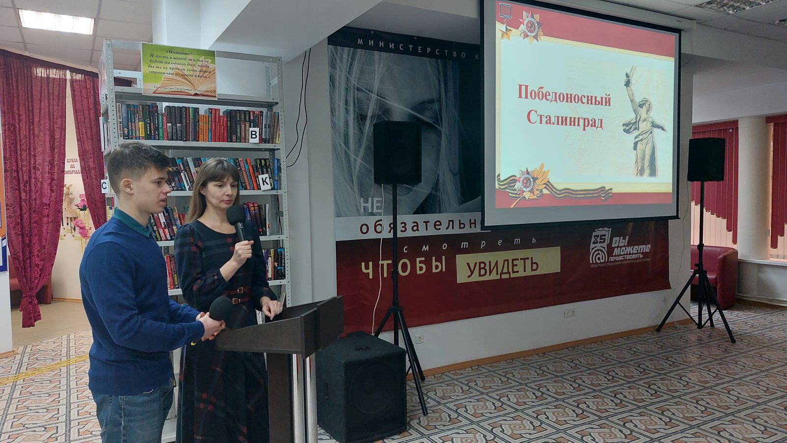 2 февраля – важный день в истории Великой Отечественной войны 1941-1945 гг. и всей Второй Мировой. 2 февраля – День воинской славы России – День разгрома советскими войсками немецко-фашистских войск в Сталинградской битве. Ровно 80 лет назад советские войска одержали Победу в решающей и переломной Сталинградской битве. Впервые в немецкой истории руки поднял фельдмаршал Фридрих Паульс. Сегодня в Областной специальной библиотеке для слепых вспоминали, как это было. Состоялось инклюзивное мероприятие «Победоносный Сталинград». Мероприятие содержало ход сражения на Волге. Читателям рассказали о мужестве и стойкости советских солдат и офицеров, и высоко профессиональных действиях команды Красной армии. Заслушали уникальные архивные документы - Сталинград. Великая Победа Великой войны. Ведущий мероприятия рассказали о ходе сражения и разгроме гитлеровских войск на Волге. Подробно рассказали о героях великой битвы. Прозвучали пронзительные стихи Рождественского, песня «Горячий снег» в исполнении Юрия Гуляева. Состоялось громкое чтение отрывков из произведения «Горячий снег» Юрия Бондарева.