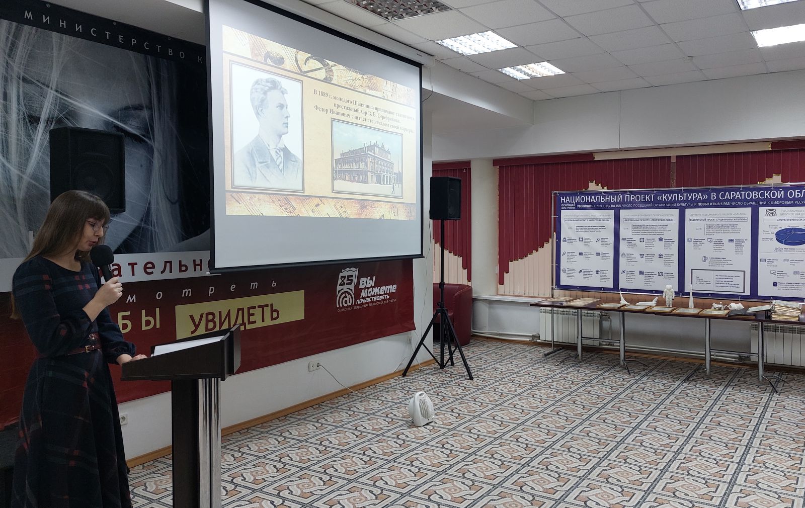 Директор ГУК «Областная специальная библиотека для слепых» провела презентацию автобиографии Шаляпина «Страницы из моей жизни». Интересно рассказала о встречи в Москве Фёдора Шаляпина и Сергея Рахманинова с великим писателем Львом Толстым.