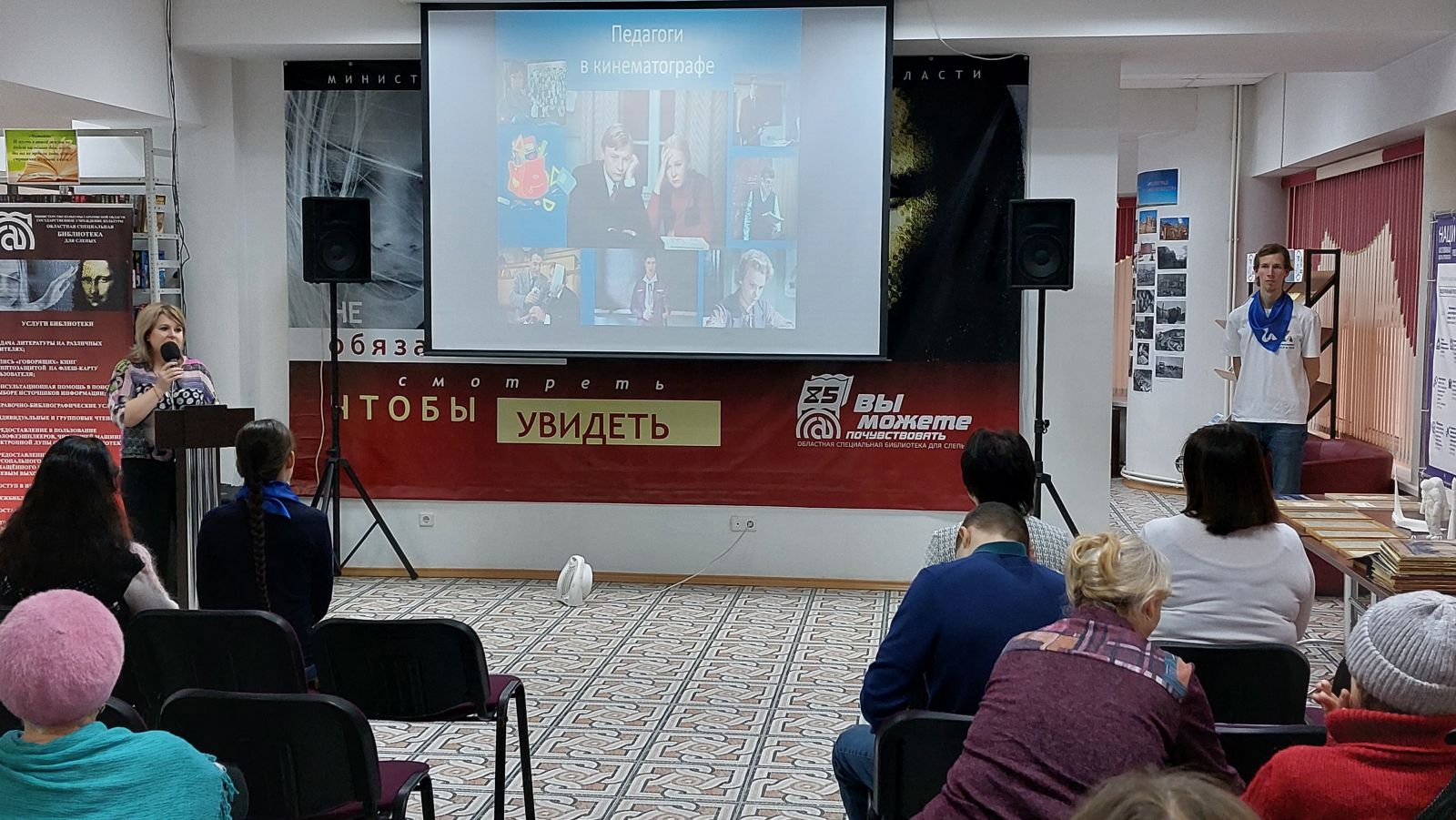 Изюминкой торжественного открытия стала викторина от друзей библиотеки – Центра языка и культуры «Слово». Сотрудник центра Наталья Удовиченко подготовила киновикторину по известным советским фильмам, посвящённым учителям. В зале не было равнодушных, все старались принять участие, некоторые фильмы отгадывали с первых слов, а над некоторыми было необходимо время для размышления.