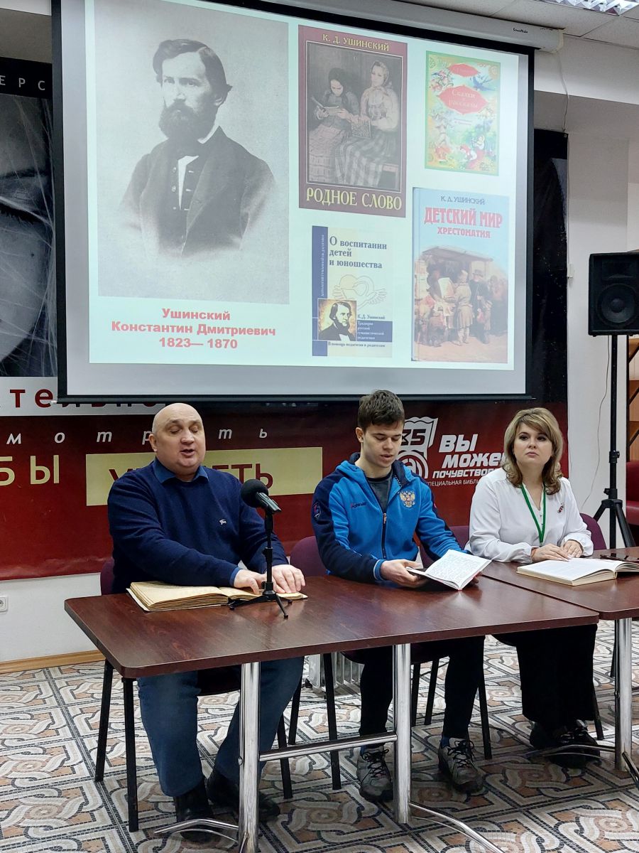 Тема года – Год педагога и наставника – приурочена к 200-летию одного из основателей российской педагогики Константина Дмитриевича Ушинского. Ушинский является автором замечательных учебных книг, по которым в течении более полувека обучались десятки миллионов человек в России. Прославленный педагог является автором многочисленных научных трудов для детей. Именно его рассказы для детей были выбраны сегодня для чтения вслух.