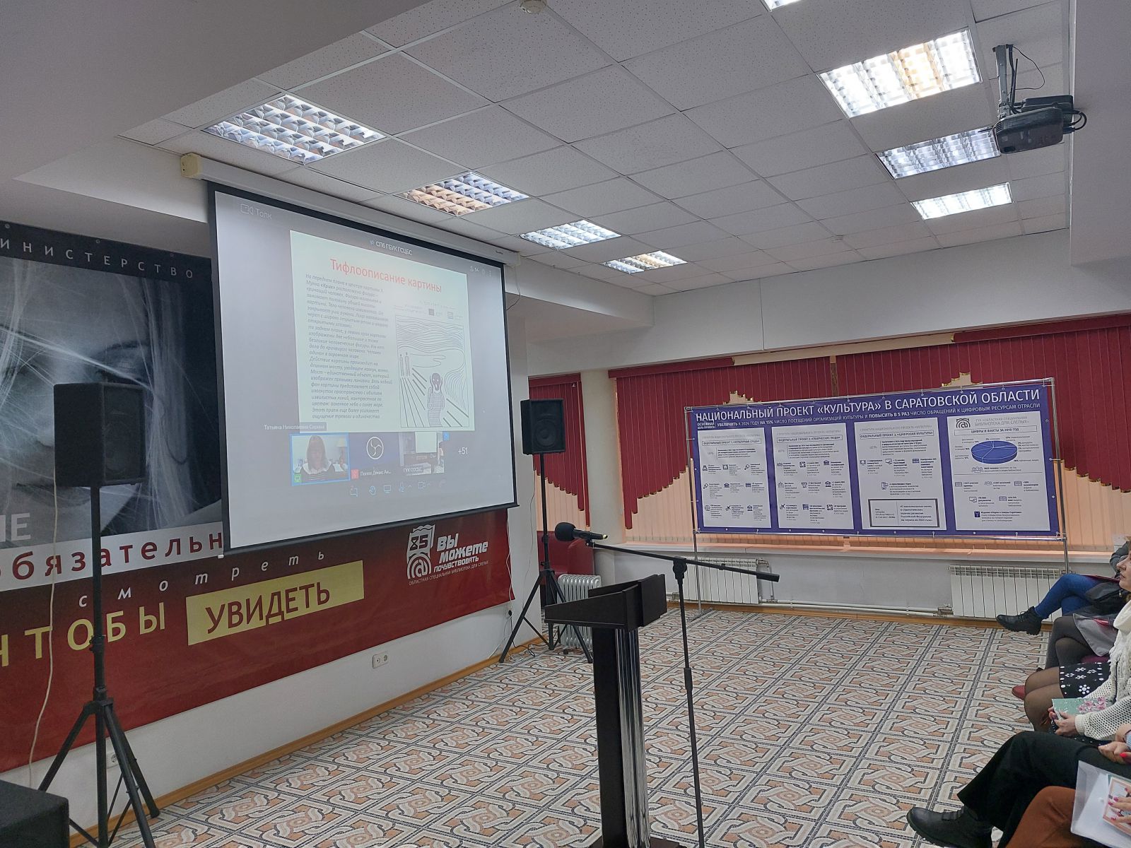 15 марта в ГУК «Областная специальная библиотека для слепых» прошёл онлайн семинар «Доступность учреждений в сфере культуры для несовершеннолетних» при поддержке министерства культуры Саратовской области.