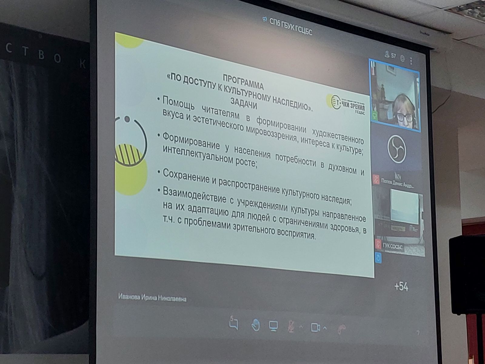 «Доступ к культурному наследию. Проект «Галерея на Стрельнинской».Иванова Ирина Николаевна, заведующая сектором социокультурной и выставочной деятельности отдела развития СПб ГБУК «Государственная специальная центральная библиотека для слепых и слабовидящих»