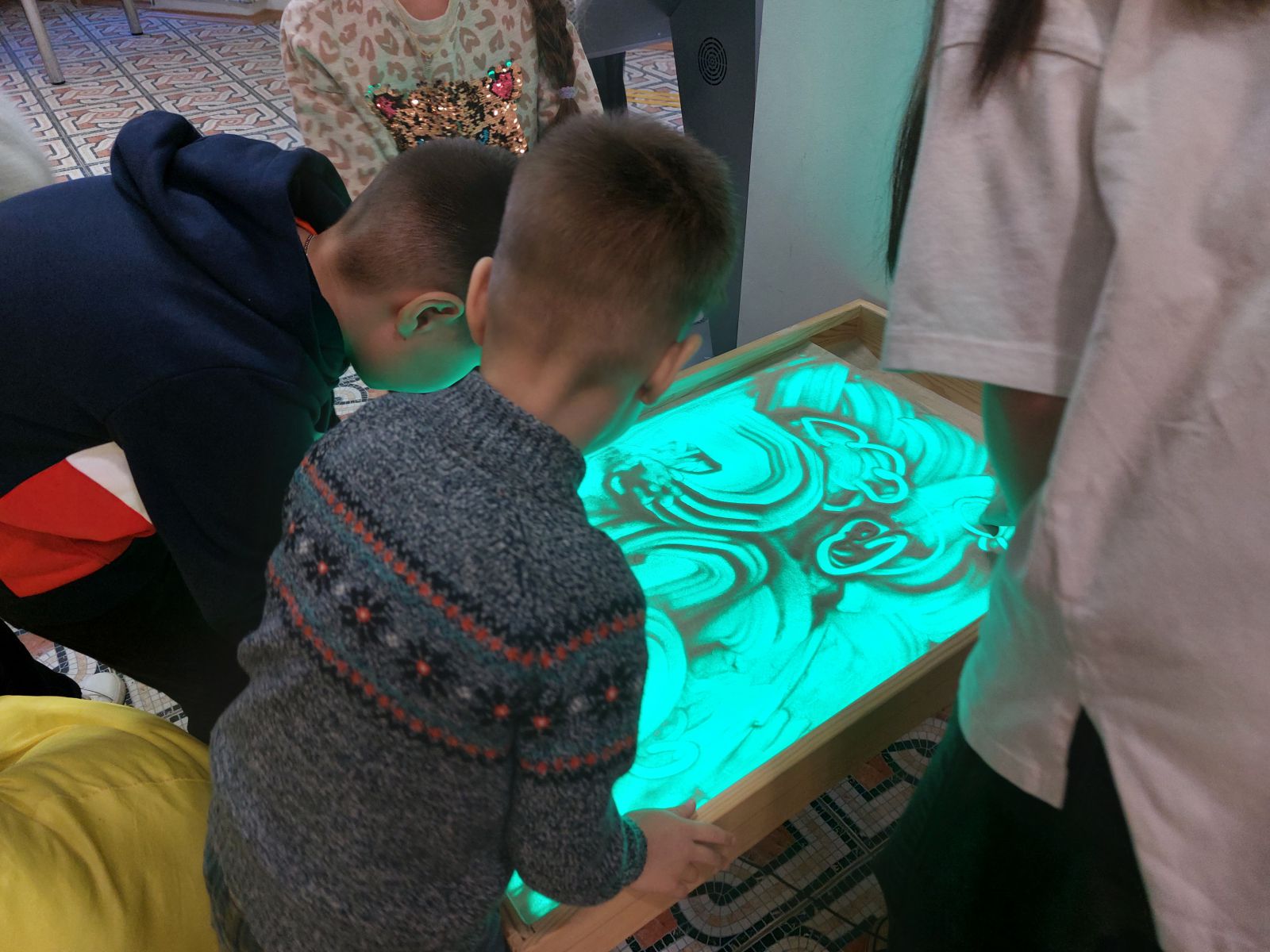 В Детском центре психолог библиотеки представила свою работу, познакомила с книжками для маленьких слепых детей и «волшебным» карандашом. Учащимся рассказали, что самым любимым местом для самых маленьких читателей является песочная терапия и предоставили возможность порисовать песком.