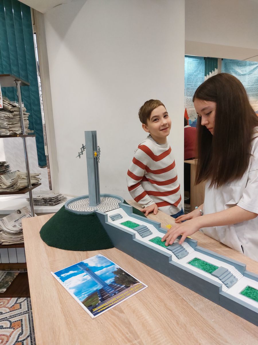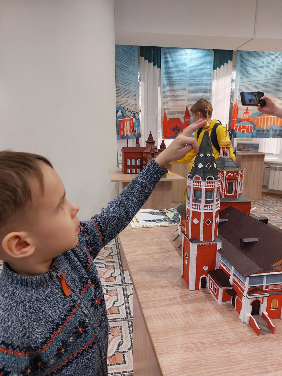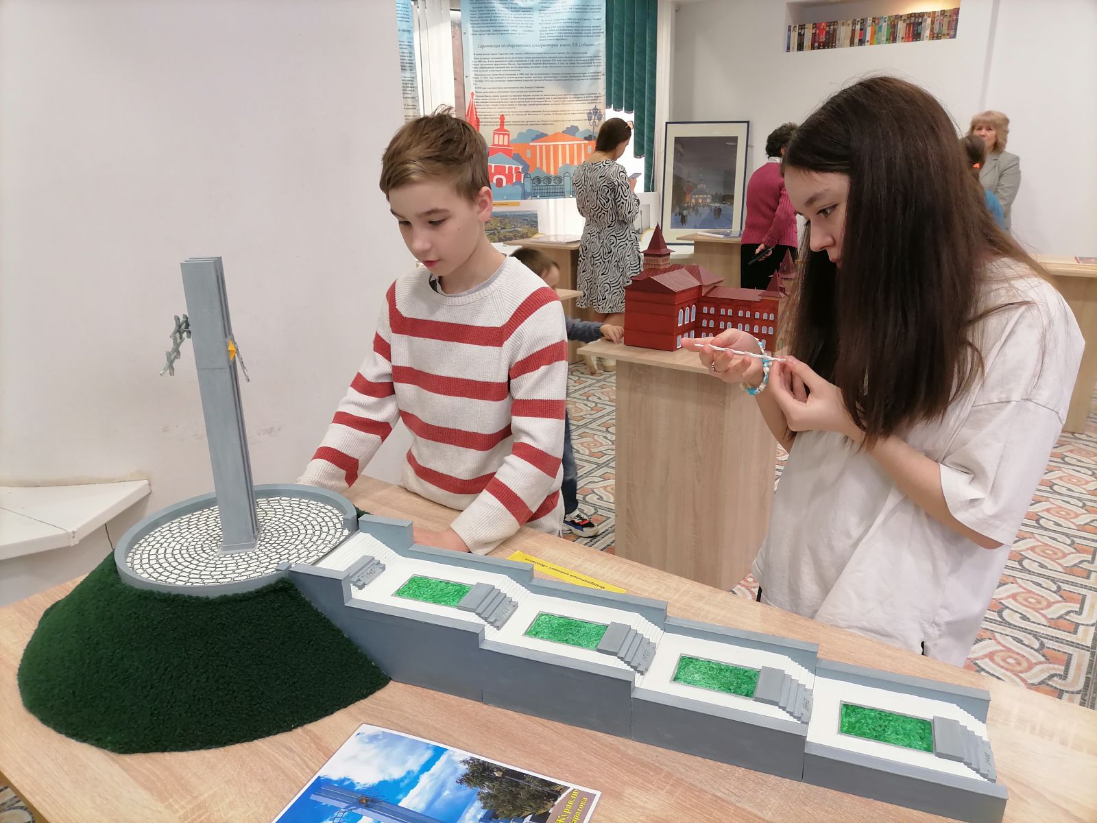 Ребята надолго задержались около 3D принтера и узнали, как создаются макеты архитектурных зданий, в т.ч. и представленных на выставке. Специалисты библиотеки подробно отвечали на множество вопросов о создании макетов на всех этапах – от создания на компьютере до раскрашивания макетов вручную.