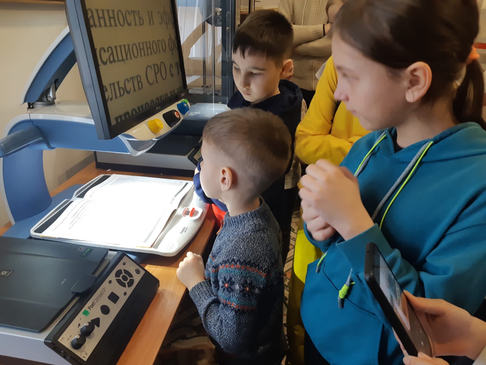 С интересом дети слушали рассказ о том, как читают люди с различными нарушениями зрений разного возраста, какие современные средства есть для чтения в электронном виде, какие бывают книги в специальных форматах. Ребята познакомились с книгами, которые издаёт издательский отдел библиотеки. Попробовали на ощупь, как читают по Брайлю незрячие люди.