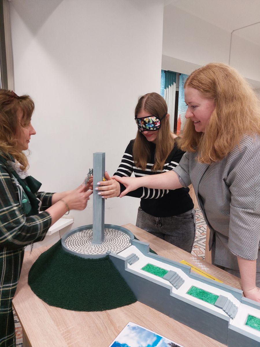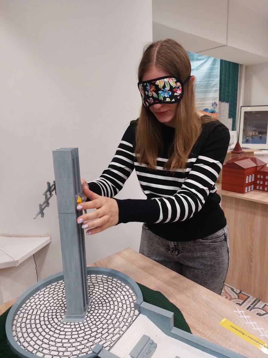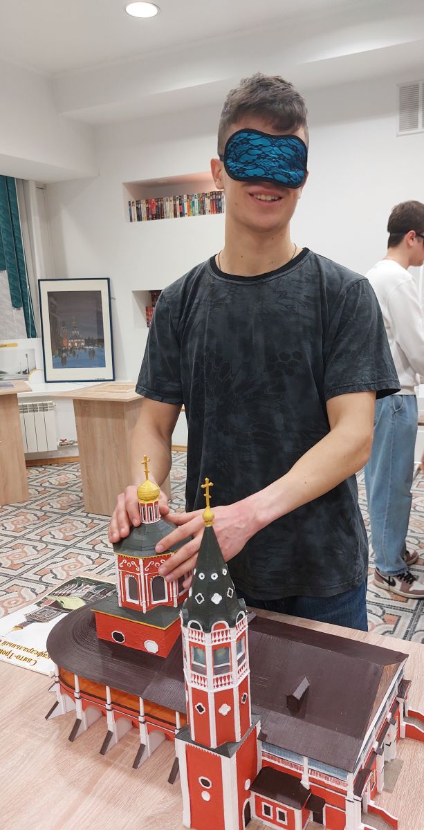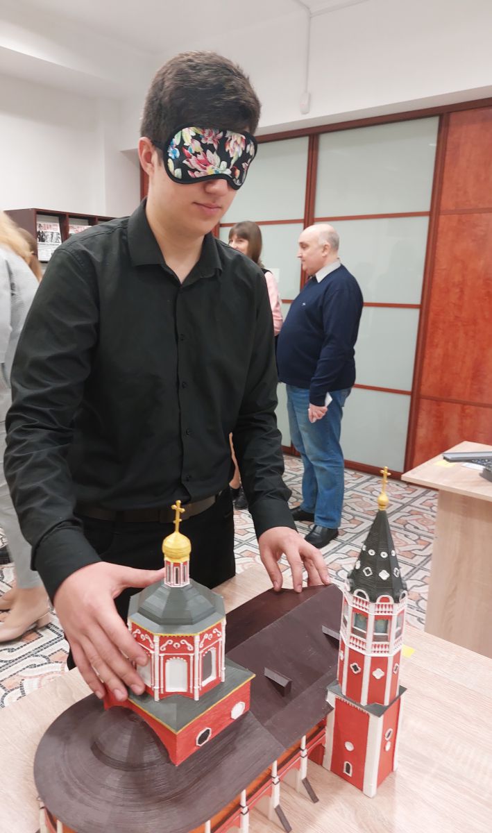 После осмотра объектов участники оставались в тактильном зале и с интересом сопереживали своим друзьям. Каким же было удивление, когда все сняли повязки и поделились своим мнением, насколько было интересно было проходить квест. Отметили красоту и уникальность макетов, представленных на выставке.