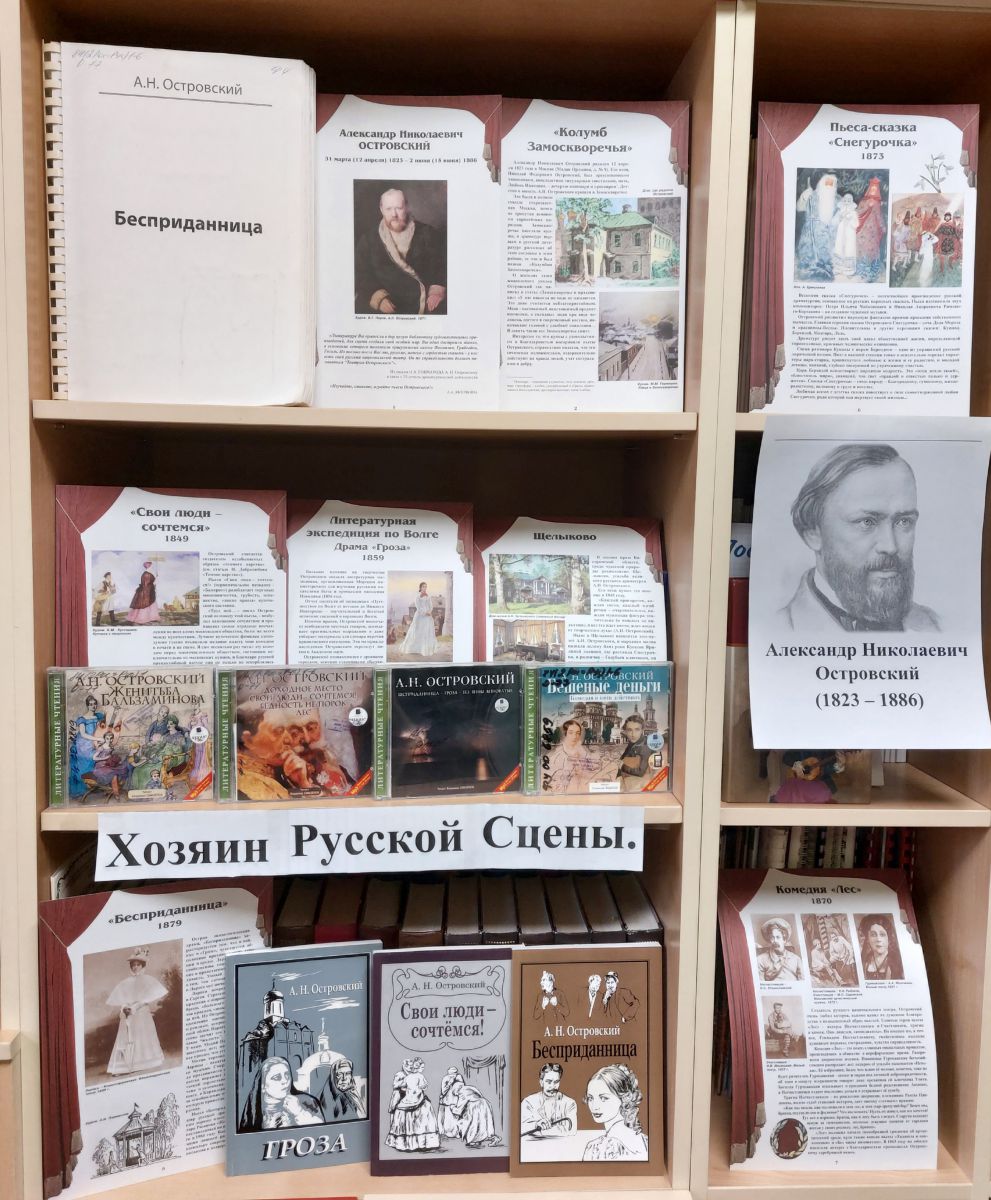 В Детском филиале Областной библиотеке для слепых работает книжно-иллюстративная выставка «Хозяин русской сцены», посвящённая 200-летию со дня рождения Александра Николаевича Островского. Это великий человек, который внёс большой вклад в развитие отечественной литературы, театральной драматургии и режиссуры. Пьесы Островского актуальны в настоящее время, как и два века назад.