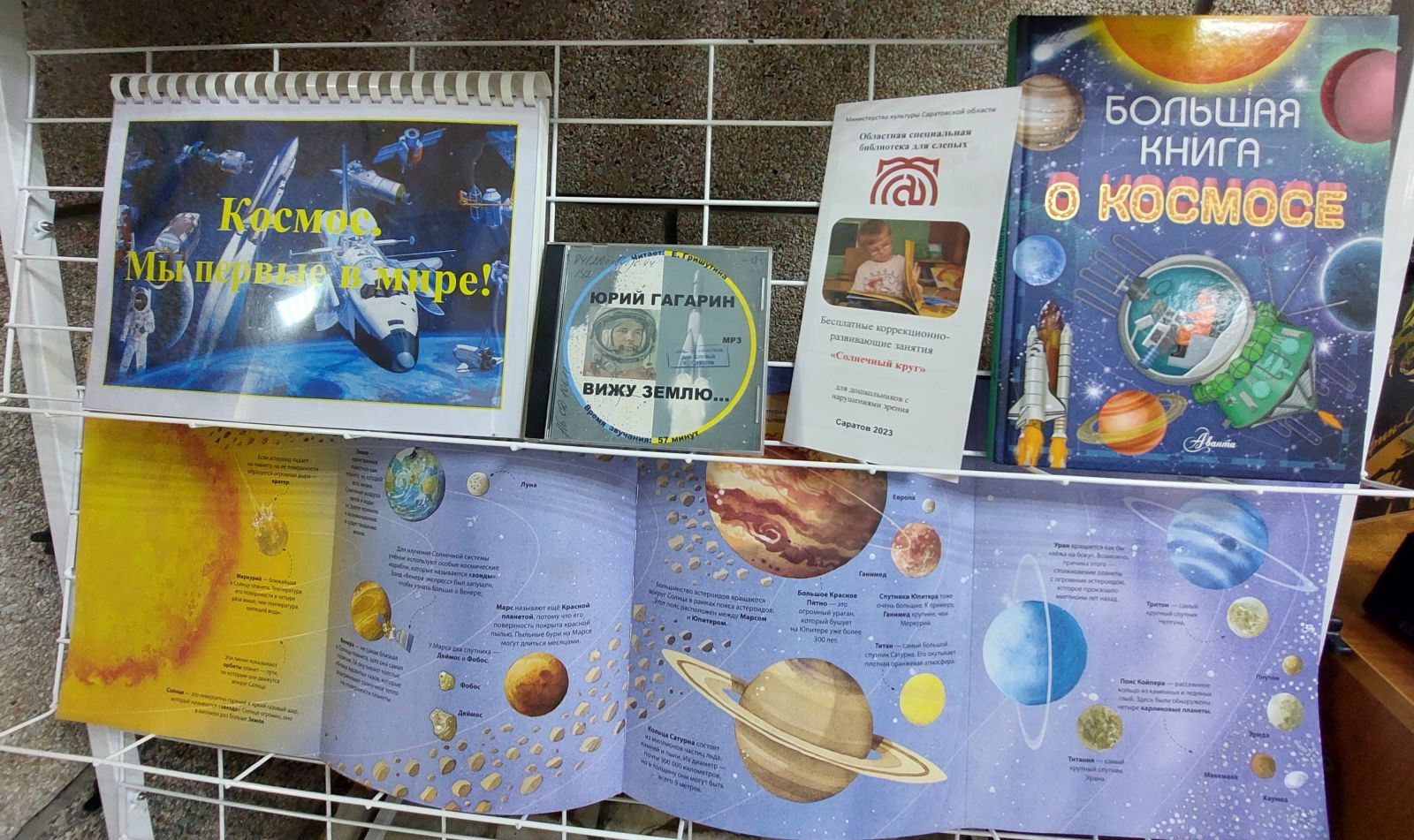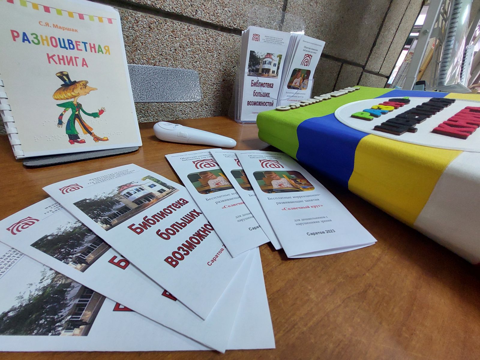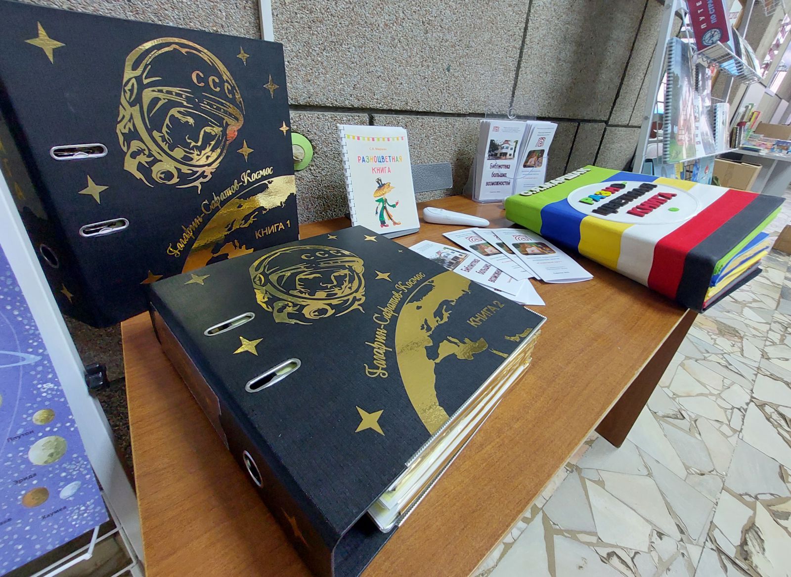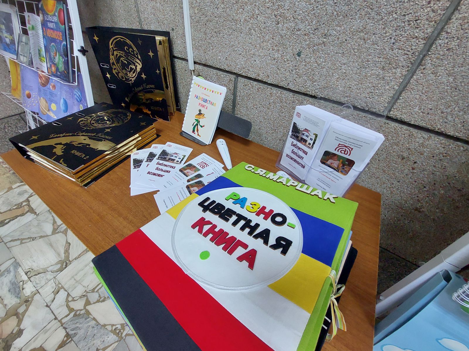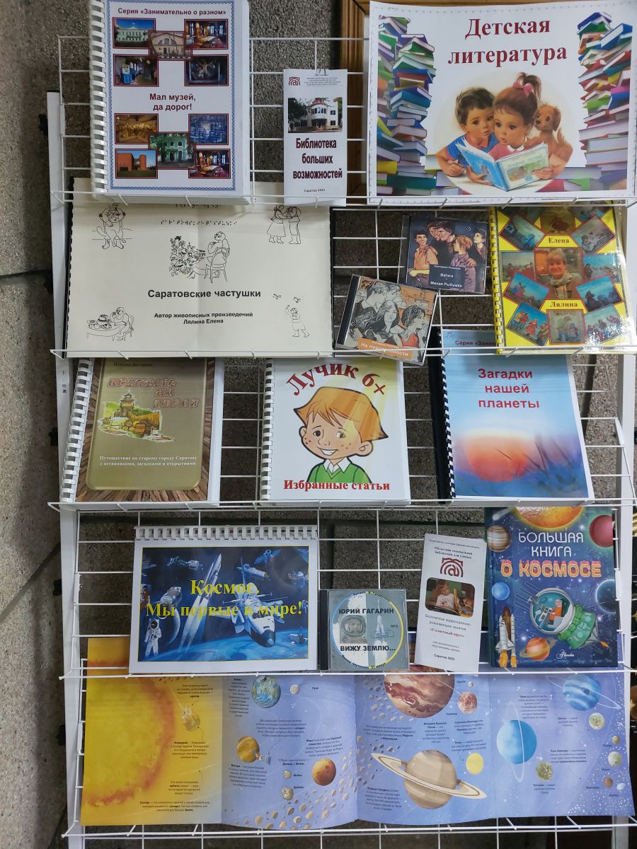 Самыми востребованными в первый день работы выставки оказались издания нашей библиотеки. Дети не выпускали из рук книгу «Гагарин – Саратов – Космос», а также только что изданные книги шрифтом Брайля, тактильную книгу «Разноцветная книга» по сказке С.Я. Маршака.