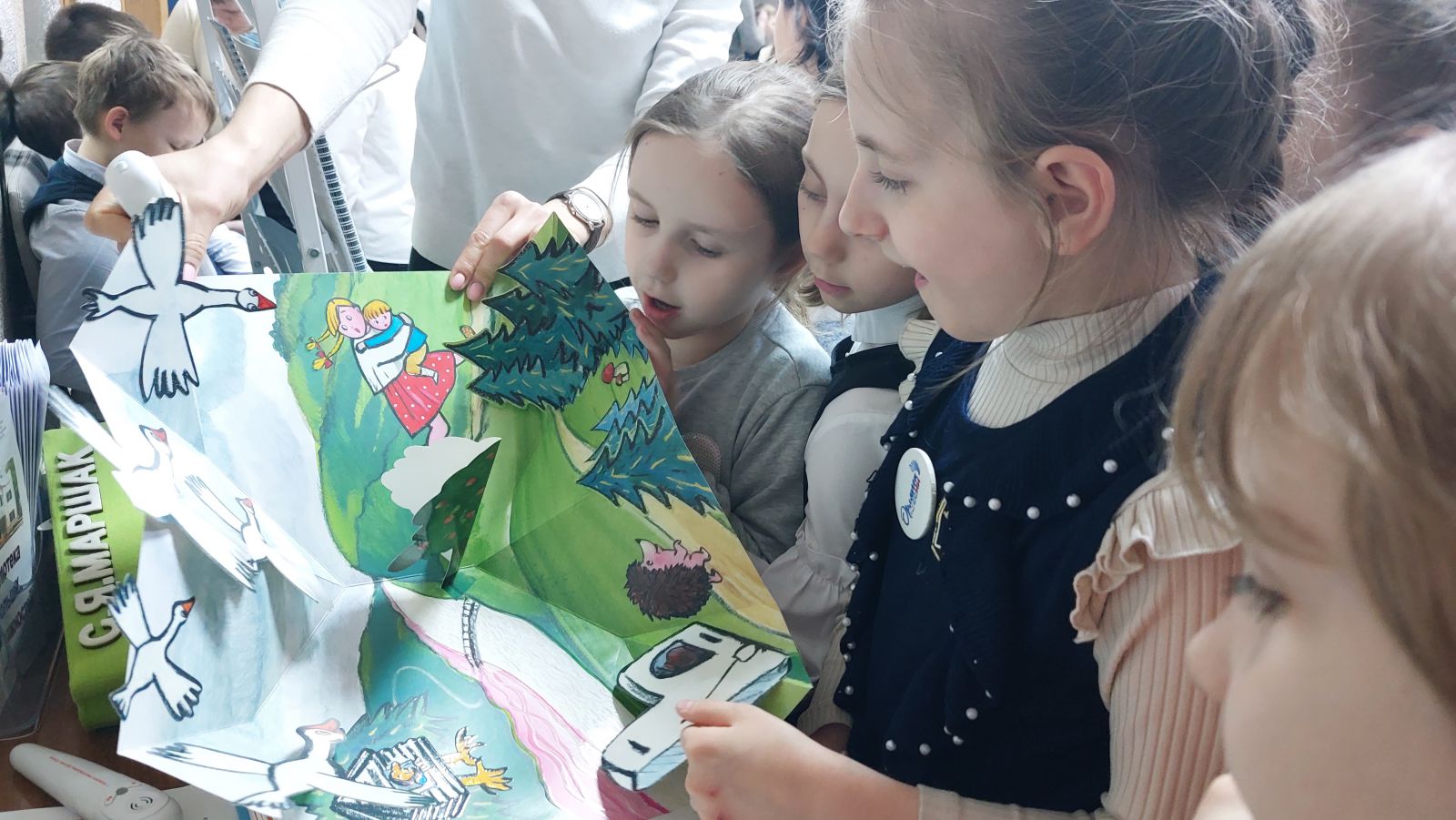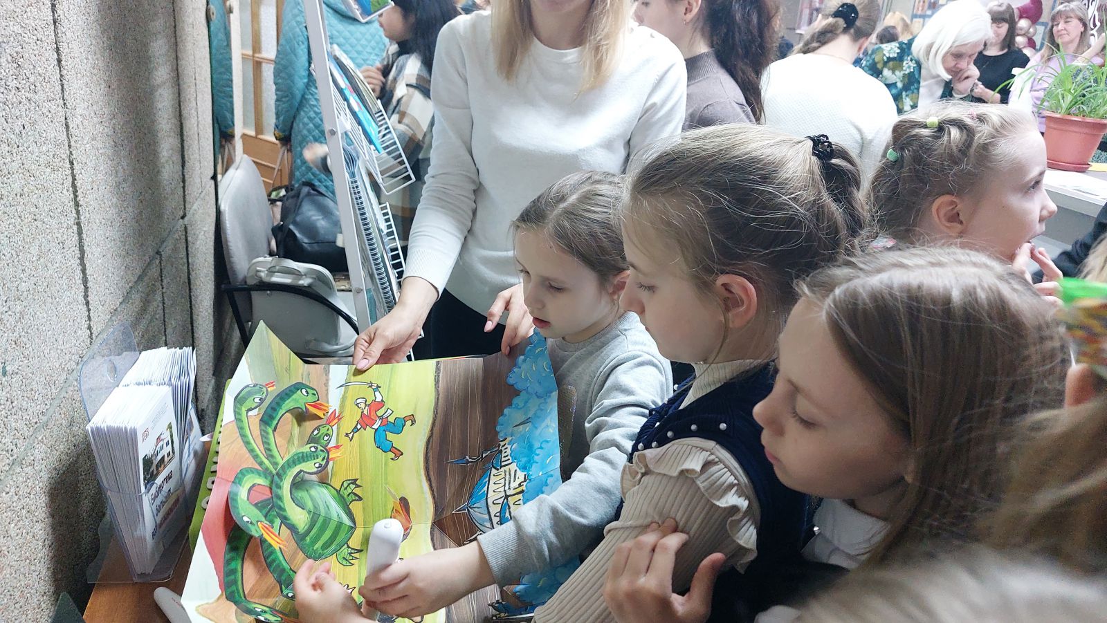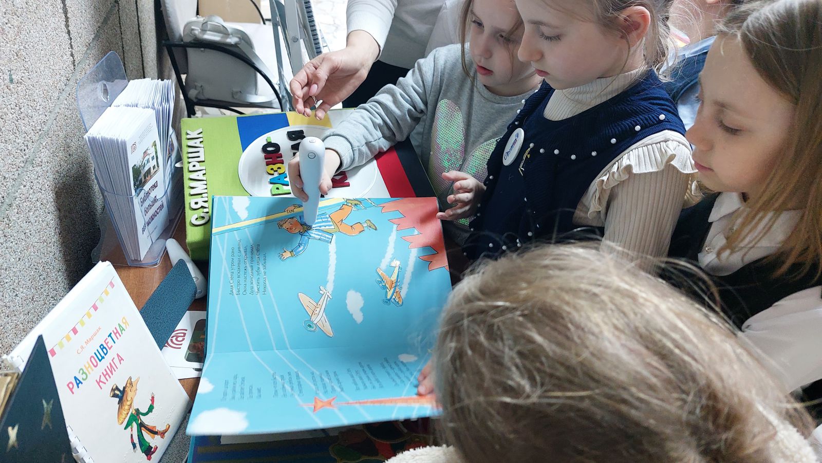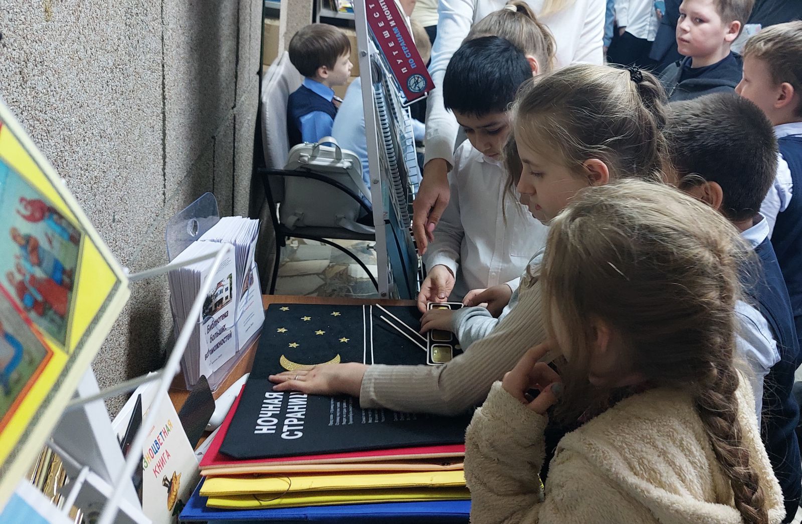 Самыми востребованными в первый день работы выставки оказались издания нашей библиотеки. Дети не выпускали из рук книгу «Гагарин – Саратов – Космос», а также только что изданные книги шрифтом Брайля, тактильную книгу «Разноцветная книга» по сказке С.Я. Маршака.