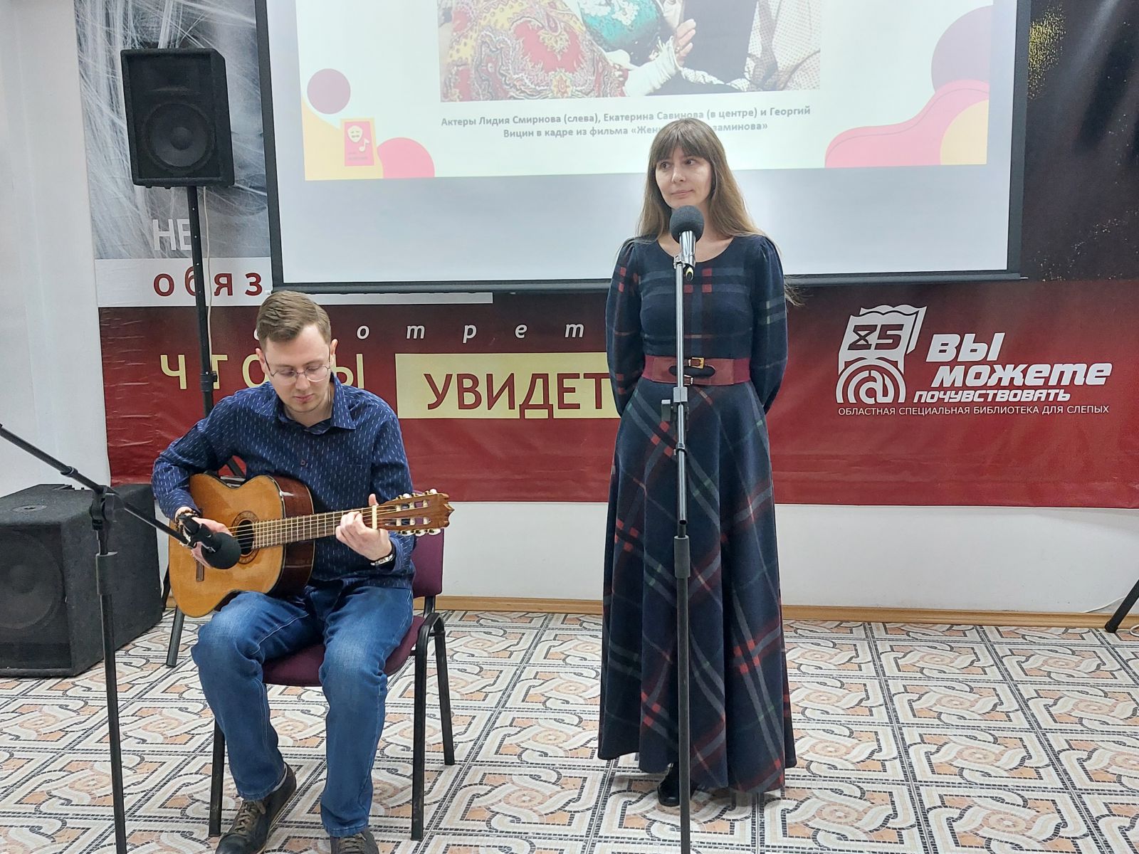 Присутствующих порадовало живое исполнение романса из к/ф «Жестокий романс», снятого по мотивам пьесы А.Н. Островского «Бесприданница», в исполнении сотрудников библиотеки.