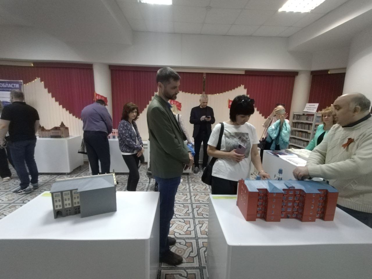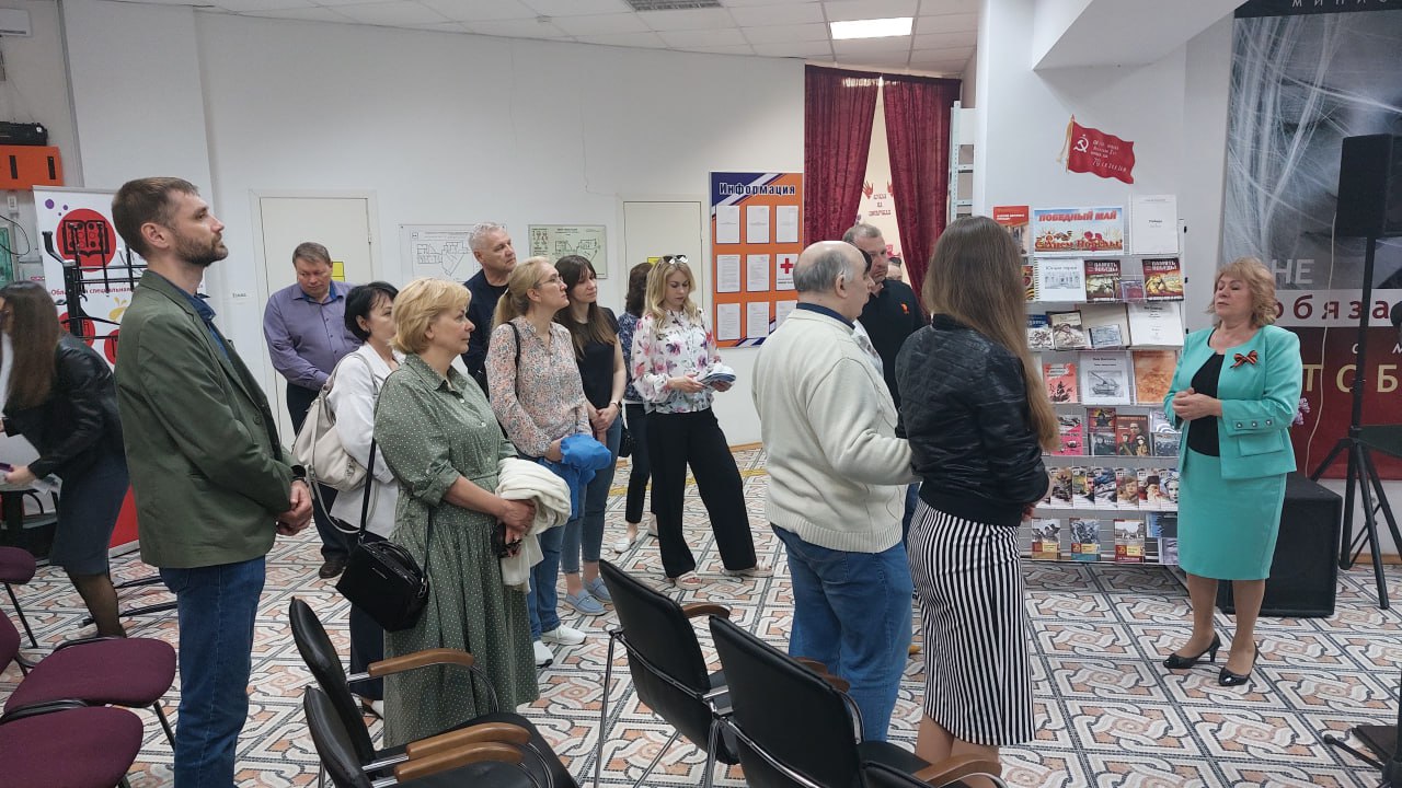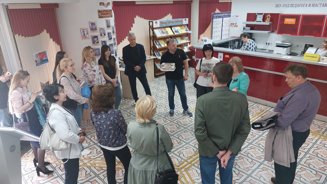 Особое внимание Ольга Ивановна уделила выставочному пространству библиотеки, выставке, посвященной Году педагога и наставника. В канун Победы гости библиотеки с особым вниманием прослушали презентацию книжно-иллюстративной выставки «Победный май» и рассказ о «Стене Памяти», где были представлены портреты участников Великой Отечественной войны 1941-1945 гг. – родных и близких сотрудников и читателей библиотеки. Портреты оформлены в едином стиле символом Бессмертного полка.