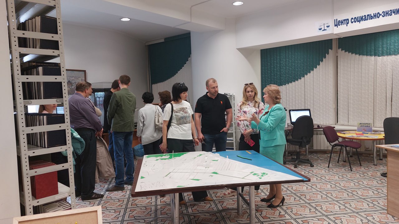 Директор библиотеки Ольга Новикова в самом начале встречи в фойе библиотеки представила коллектив библиотеки, рассказала. что сейчас библиотека – это современное инклюзивное пространство, предоставляющее весь спектр информационных услуг для жителей и гостей города, в том числе с различными проблемами здоровья.
