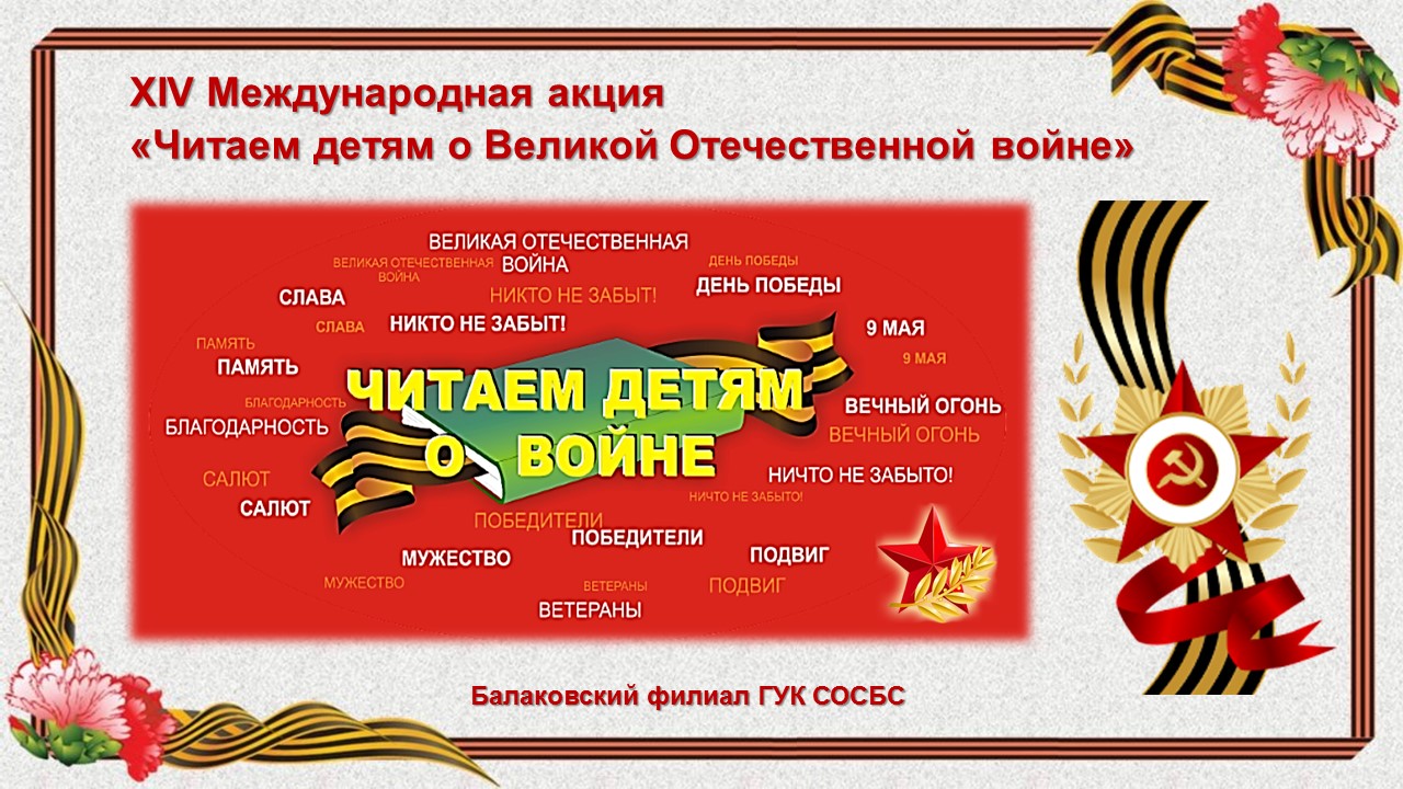 Балаковский филиал Областной специальной библиотеки для слепых принял участие в XIV Международной акции «Читаем детям о Великой Отечественной войне», приуроченной ко Дню Великой Победы. Основная идея акции – живое чтение вслух лучших образцов детской литературы о Великой Отечественной войне 1941-1945 годов детям и подросткам и обсуждение с ними произведений.