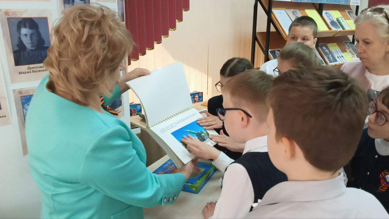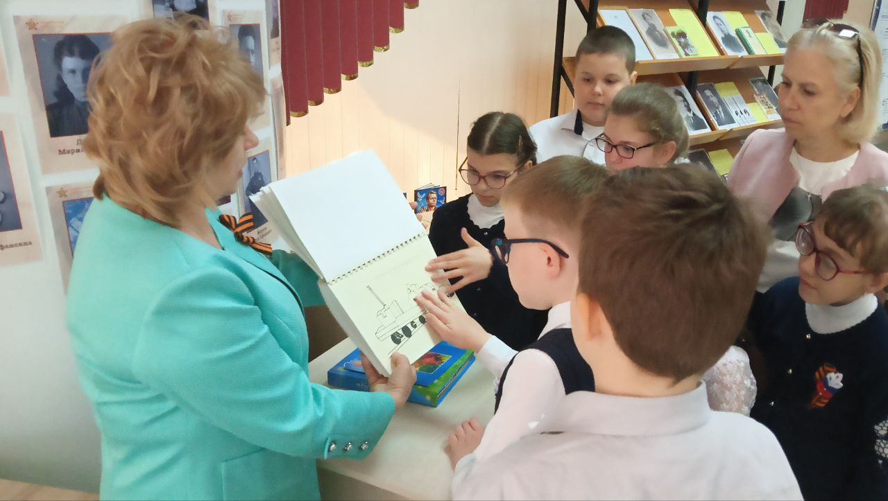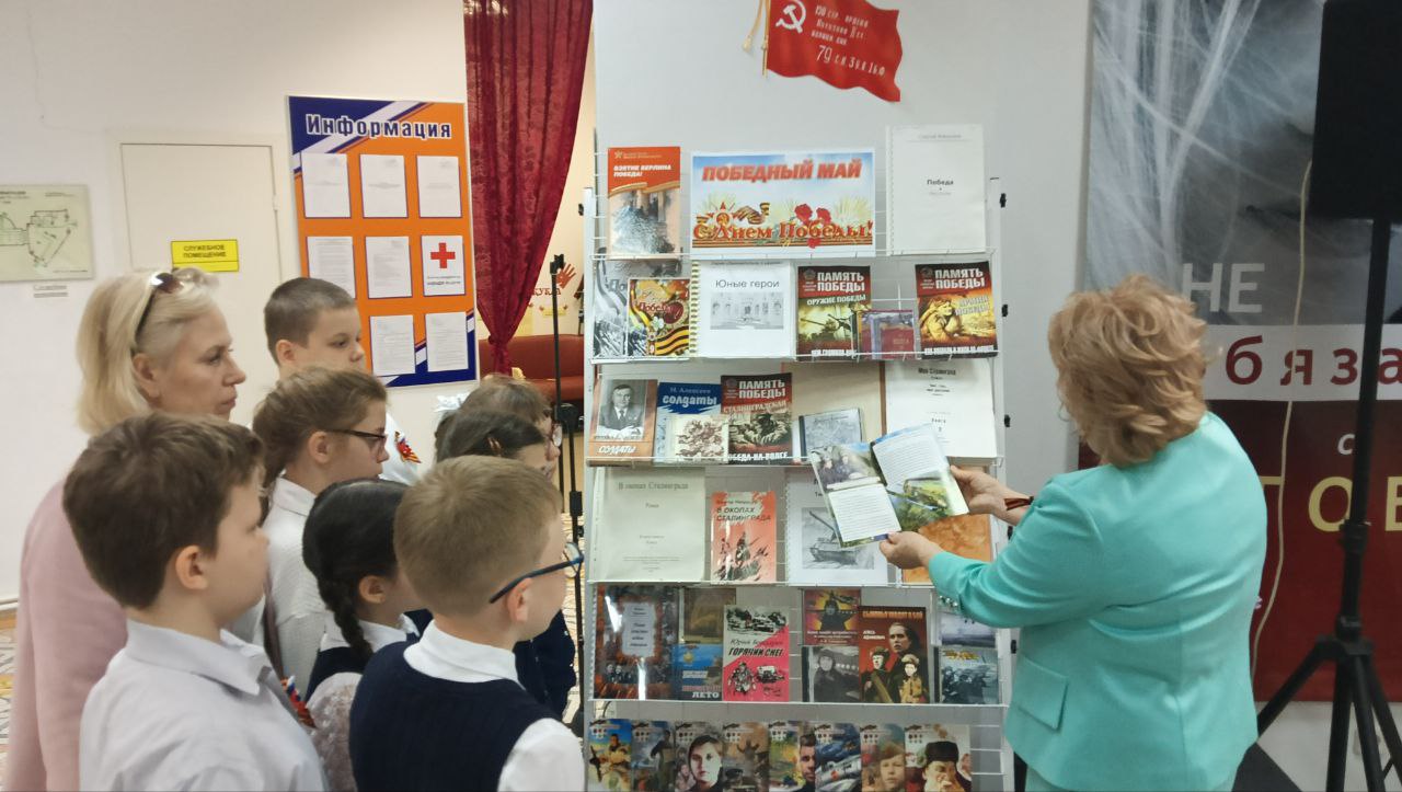 Для детей специалист библиотеки провела обзор книжно-иллюстративной выставки «Победный май», где были представлены книги, как в специальных форматах, так и плоскопечатным шрифтом. Детям рассказали, что в те роковые дни мальчишки и девчонки жили по суровым законам войны, они дежурили в госпиталях, работали на заводах, становились связными и разведчиками. Обо всем этом рассказала наша выставка.
