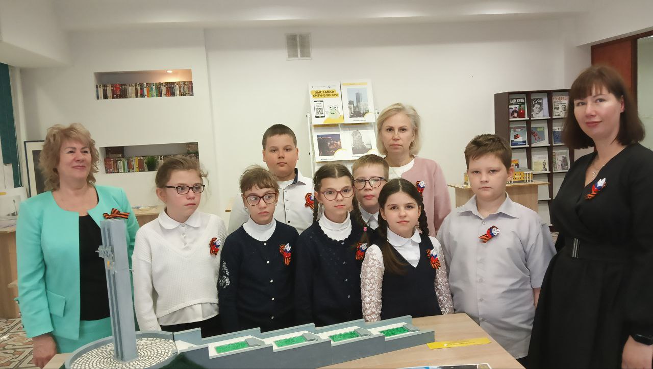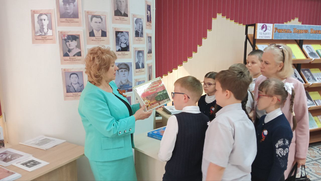 Закончилась экскурсия у «Стены Памяти», организованной по инициативе читателей и сотрудников библиотеки. На белой стене размещены портреты в едином стиле, с символом Бессмертного полка. Каждый портрет подписан – фамилия, имя, отчество, годы жизни, звание. Специалист библиотеки рассказала детям, что эта акция – возможность сказать спасибо всем защищавшим нашу Родину в годы Великой Отечественной войны, и не доживших до наших дней.
