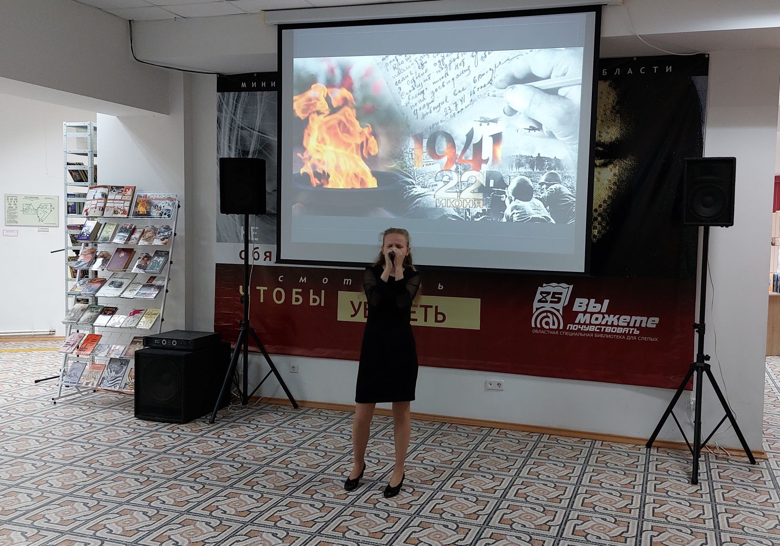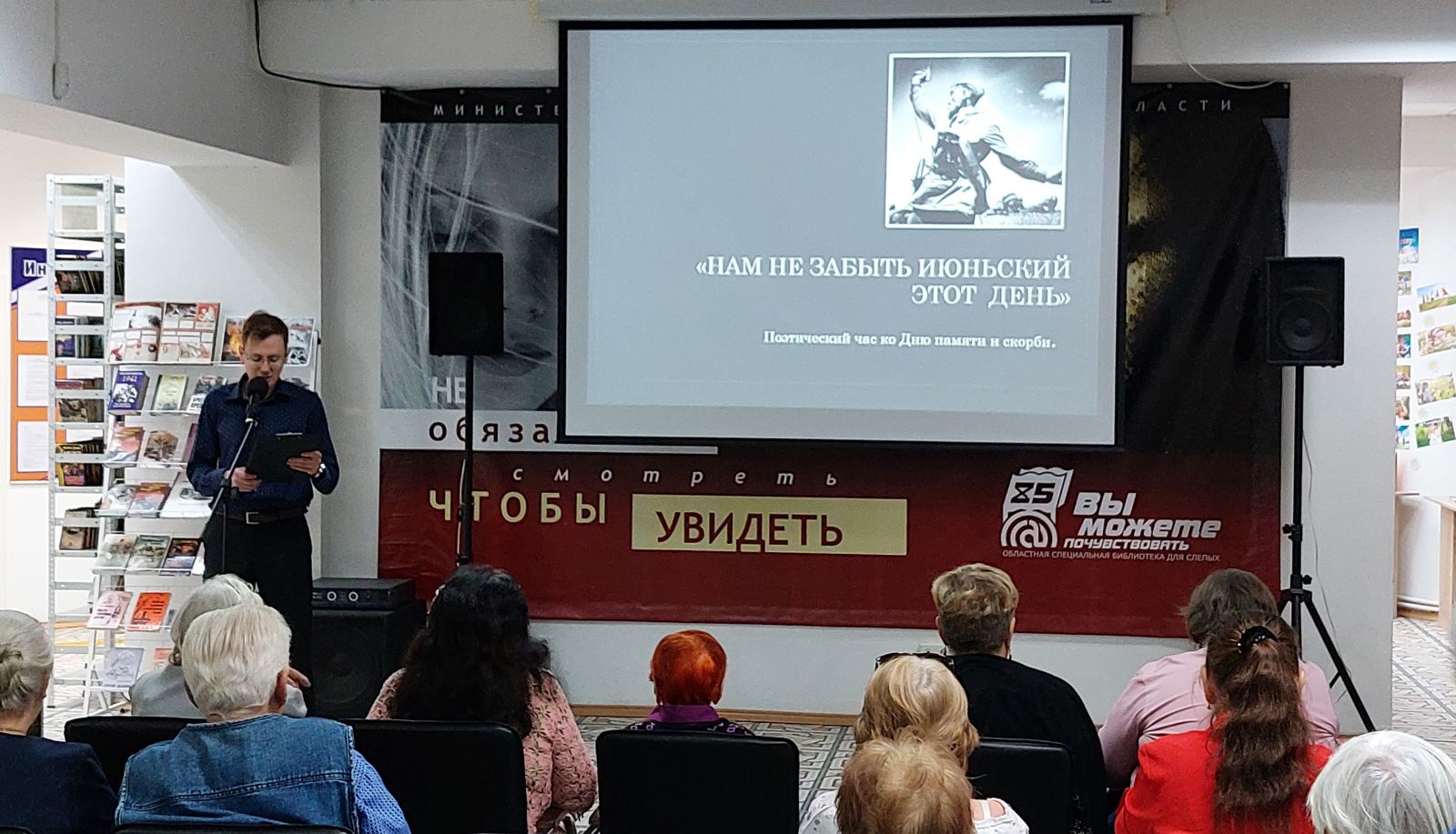 В День памяти и скорби в Областной специальной библиотеке для слепых прошёл поэтический час «Нам не забыть июньский этот день».