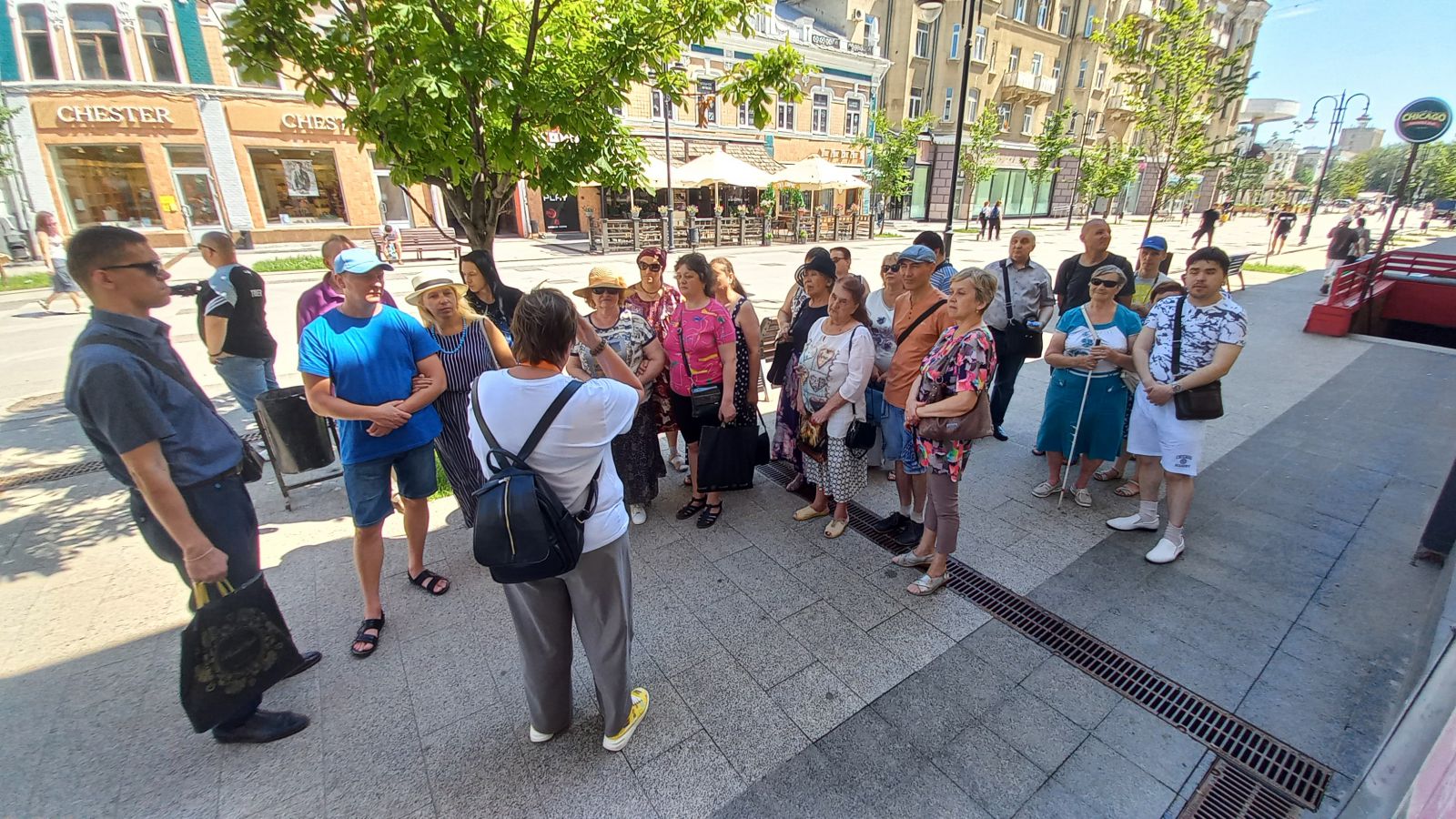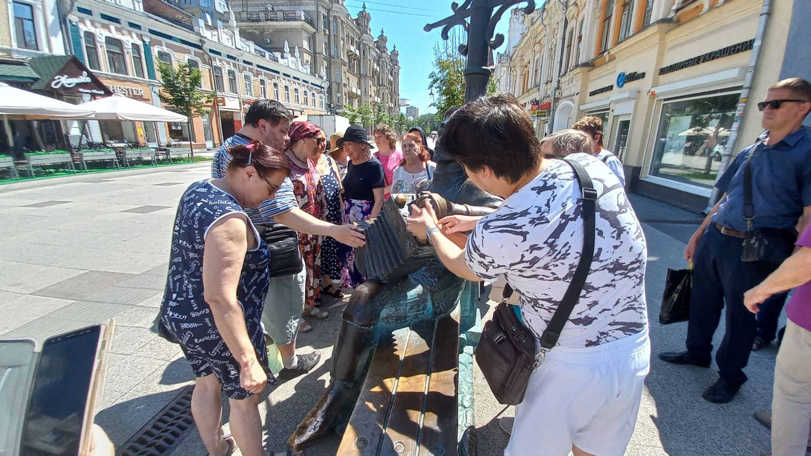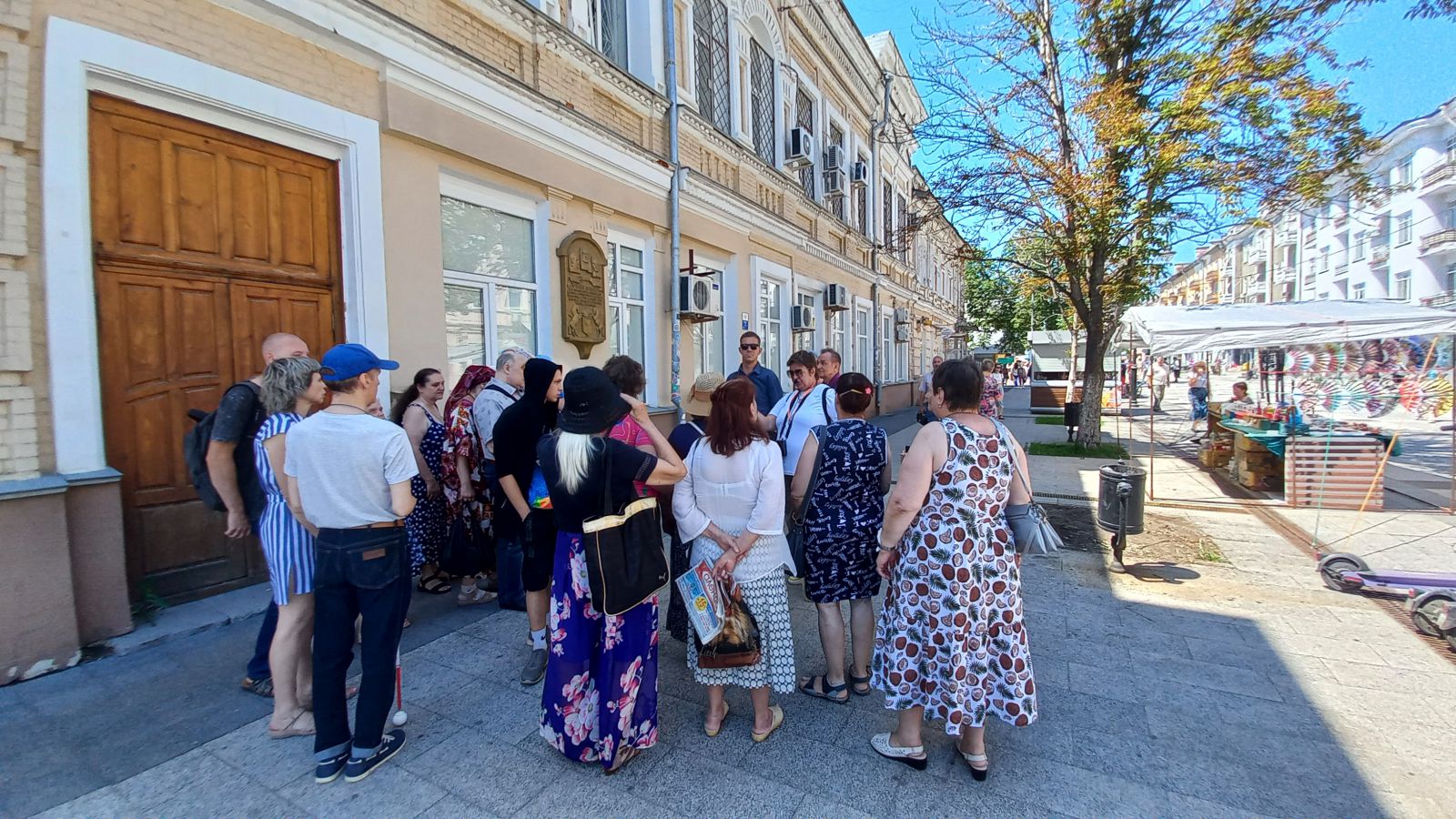 Экскурсия началась у знаменитого памятника Н.Г. Чернышевскому, барельеф которого можно увидеть на выставке «Зримый Саратов». У каждого незрячего был сопровождающий. С большим интересом экскурсанты слушали гида, рассказывающего о разных исторических эпохах, которые объединили в себе историю цирка, купеческий быт, судьбы немцев Поволжья.
