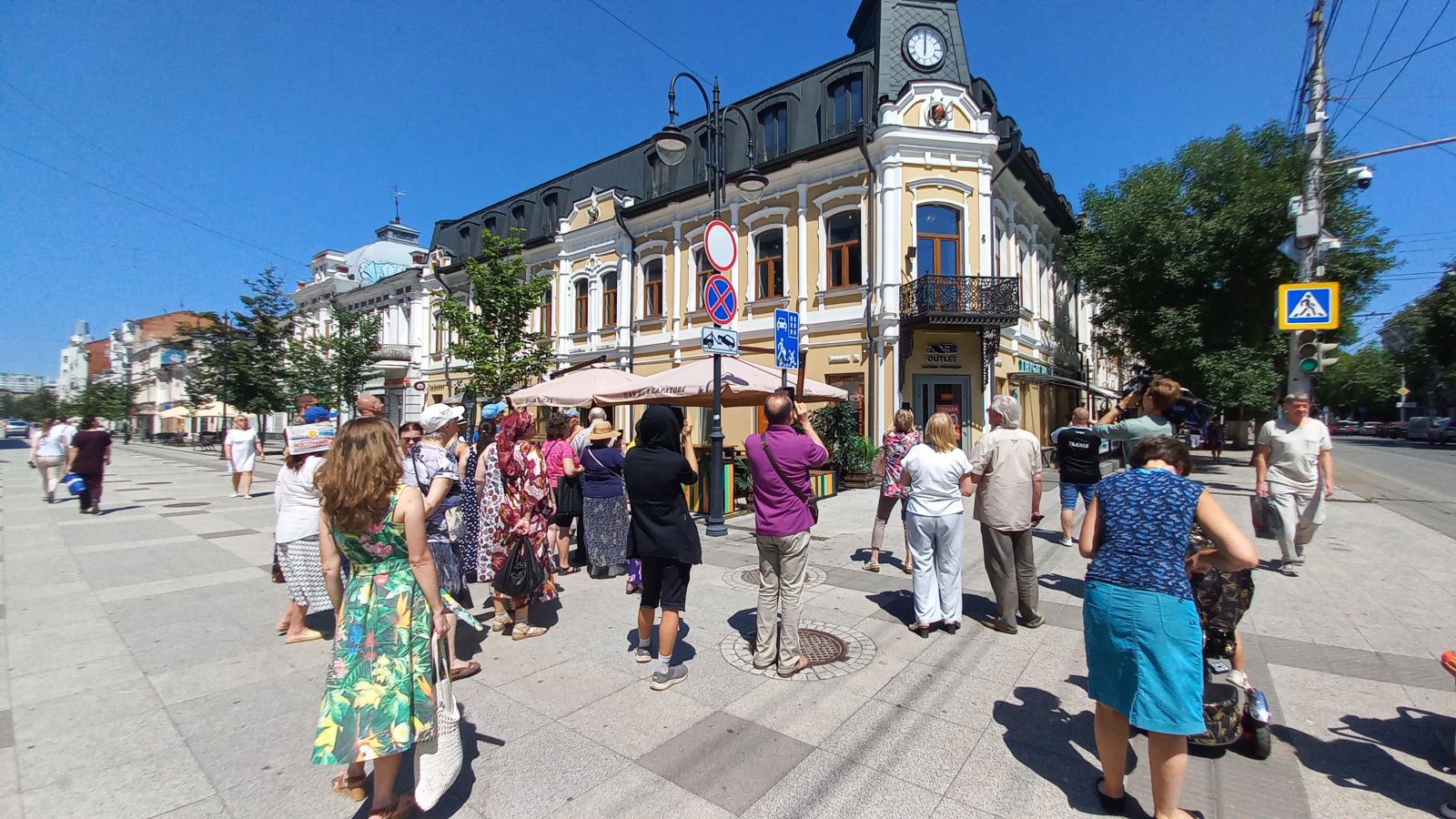 Ровно в полдень группа подошла к дому Блюм, из часов которого прозвучала мелодия «Огней так много золотых» композитора Кирилла Молчанова. Участники экскурсии оказались под большим впечатлением и от выезжающих птичек.
