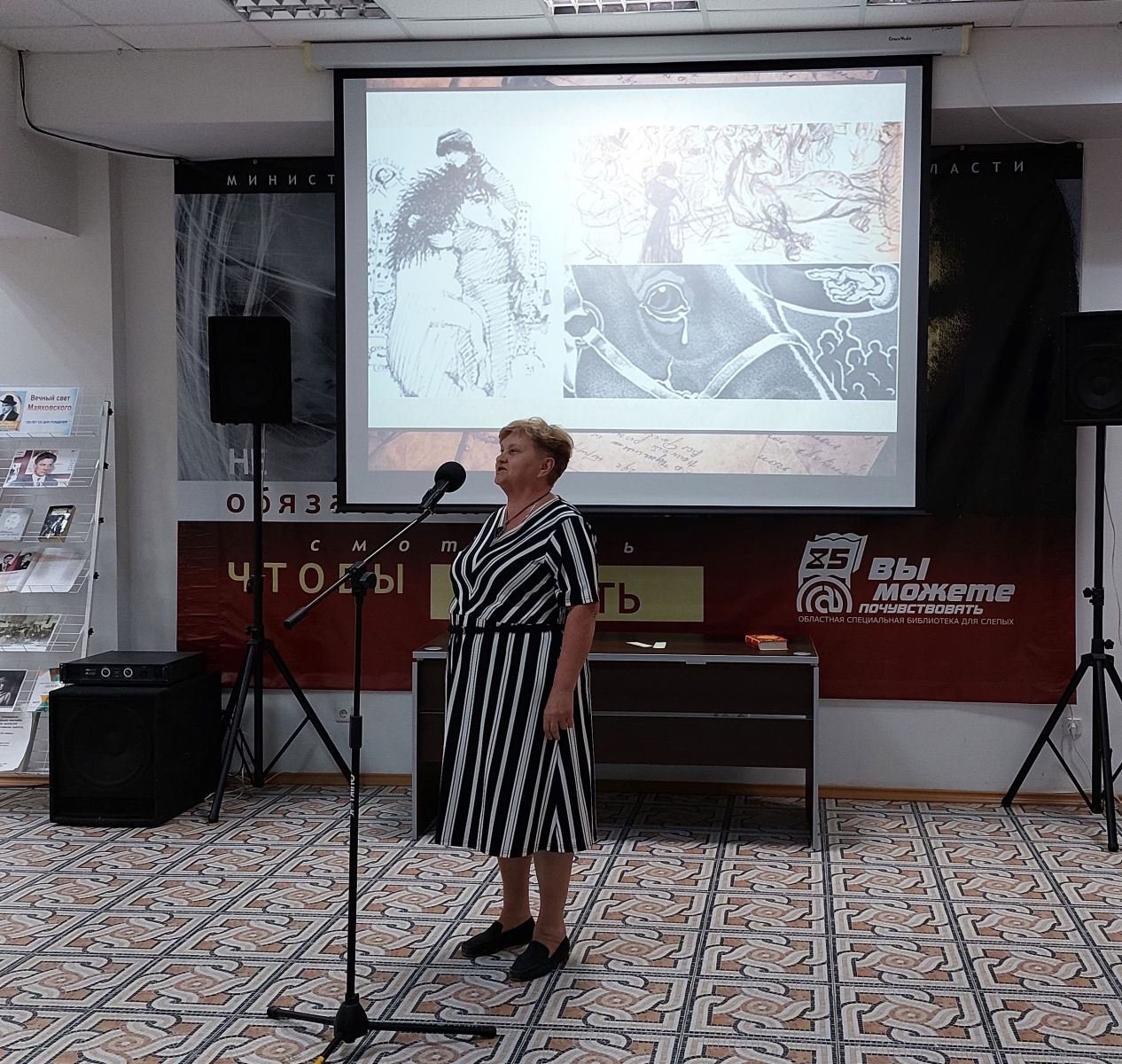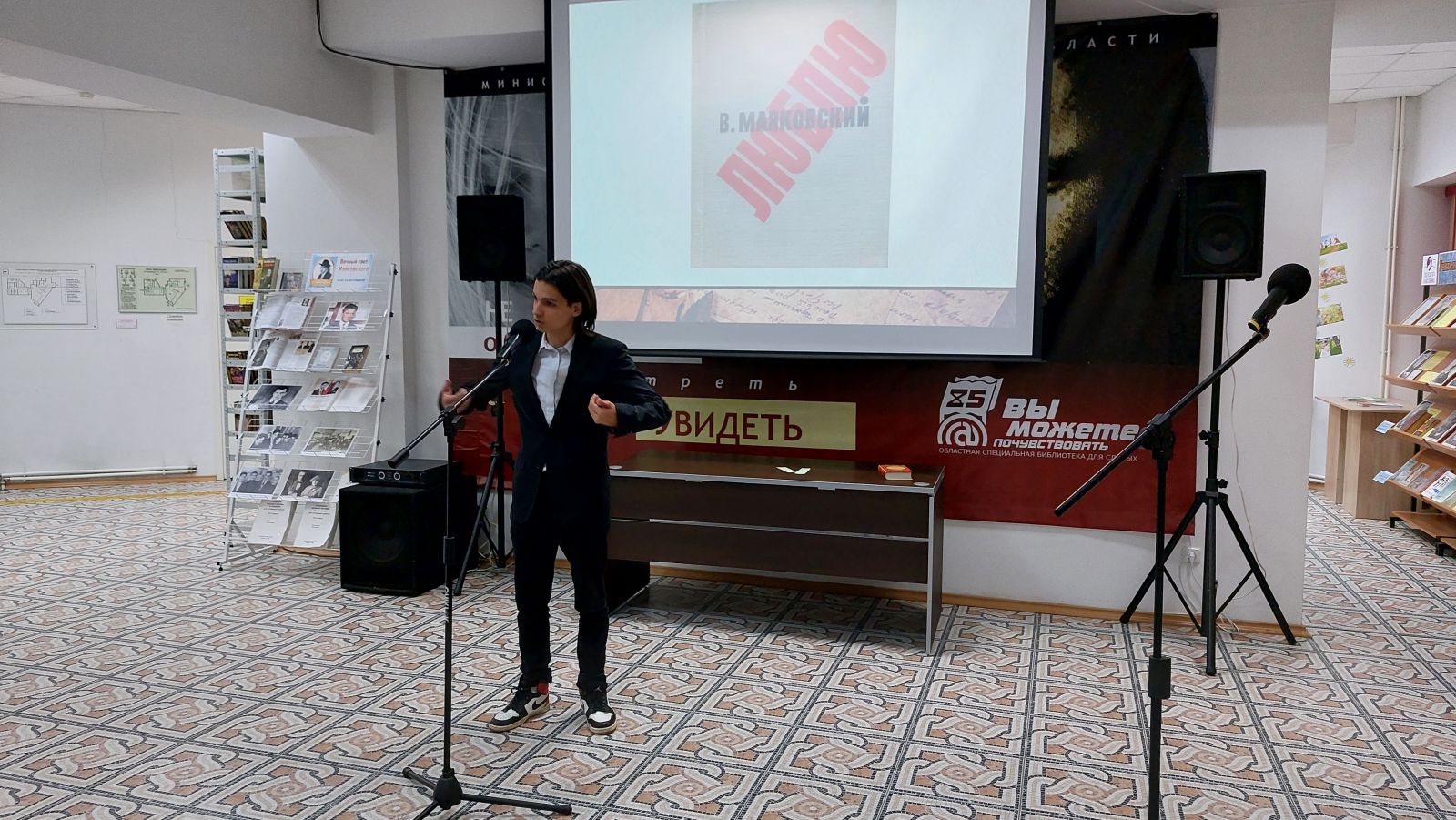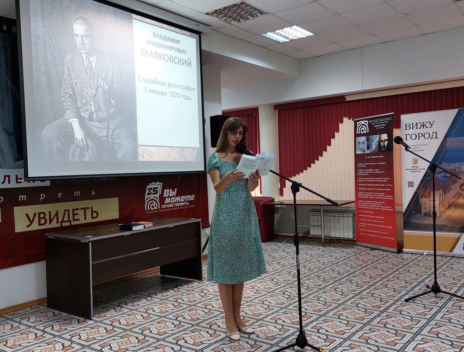 В ГУК «Областная специальная библиотека для слепых» прошло большое инклюзивное мероприятие «Во весь говорю», посвященное Владимиру Маяковскому. Современники называли его одиночкой–бунтарем, поэтом-революционером, мастером-новатором. Сам он писал о себе так: «Я себя советским чувствую заводом, вырабатывающим счастье…»