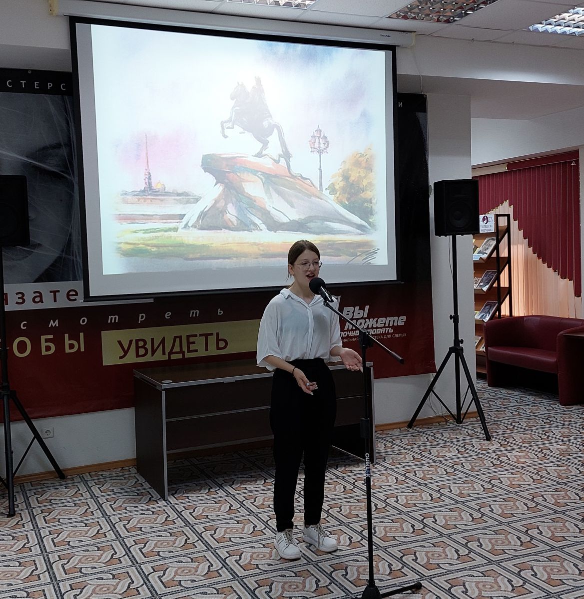 Читатели с большим вниманием слушали рассказ о встрече Маяковского с любовью всей его жизни Лилией Бриг, о первом публичном выступлении, о выпуске первого сборника «Я». Также ведущий рассказал и о памятнике Маяковскому в Москве на Триумфальной площади, о стиле известного поэта одеваться.