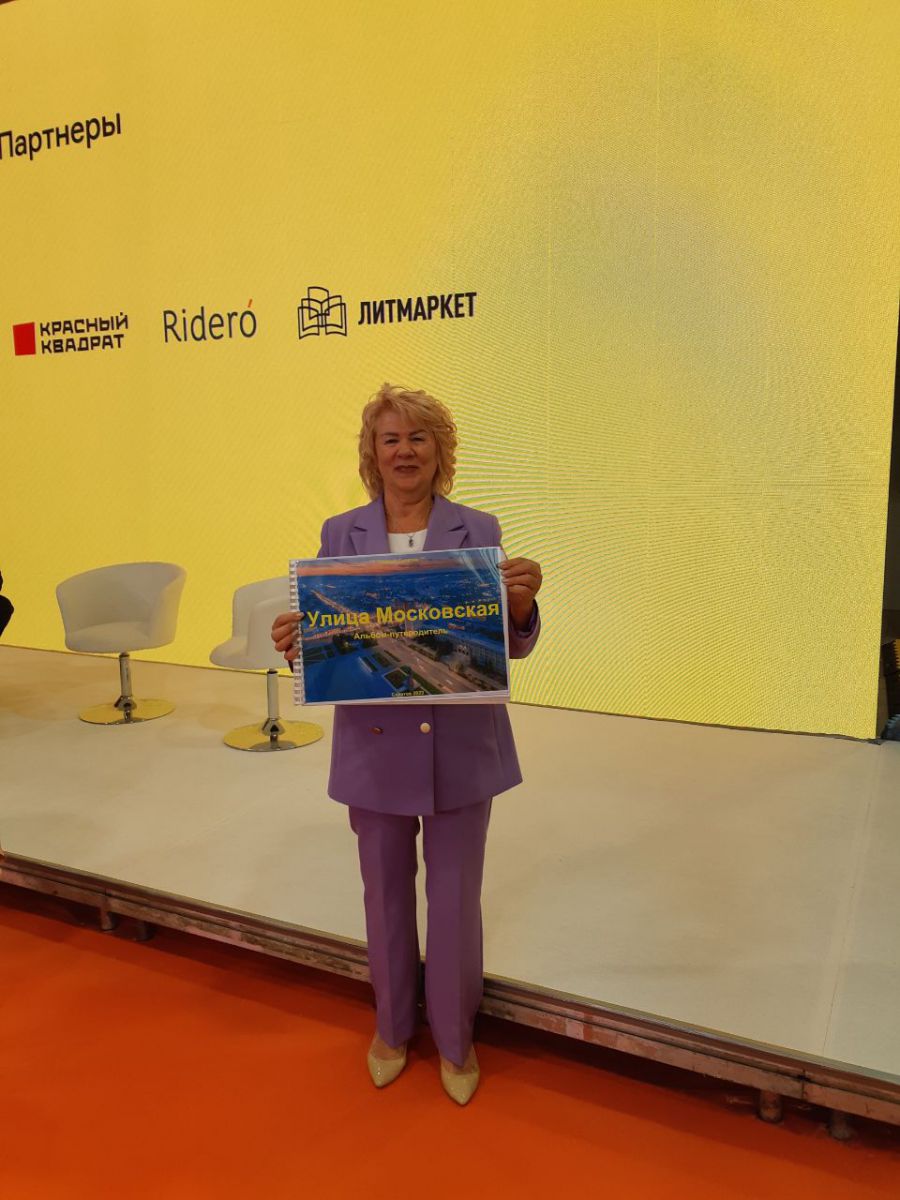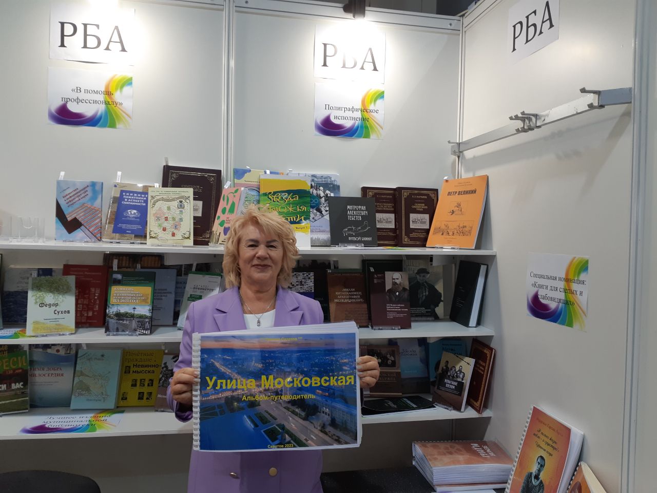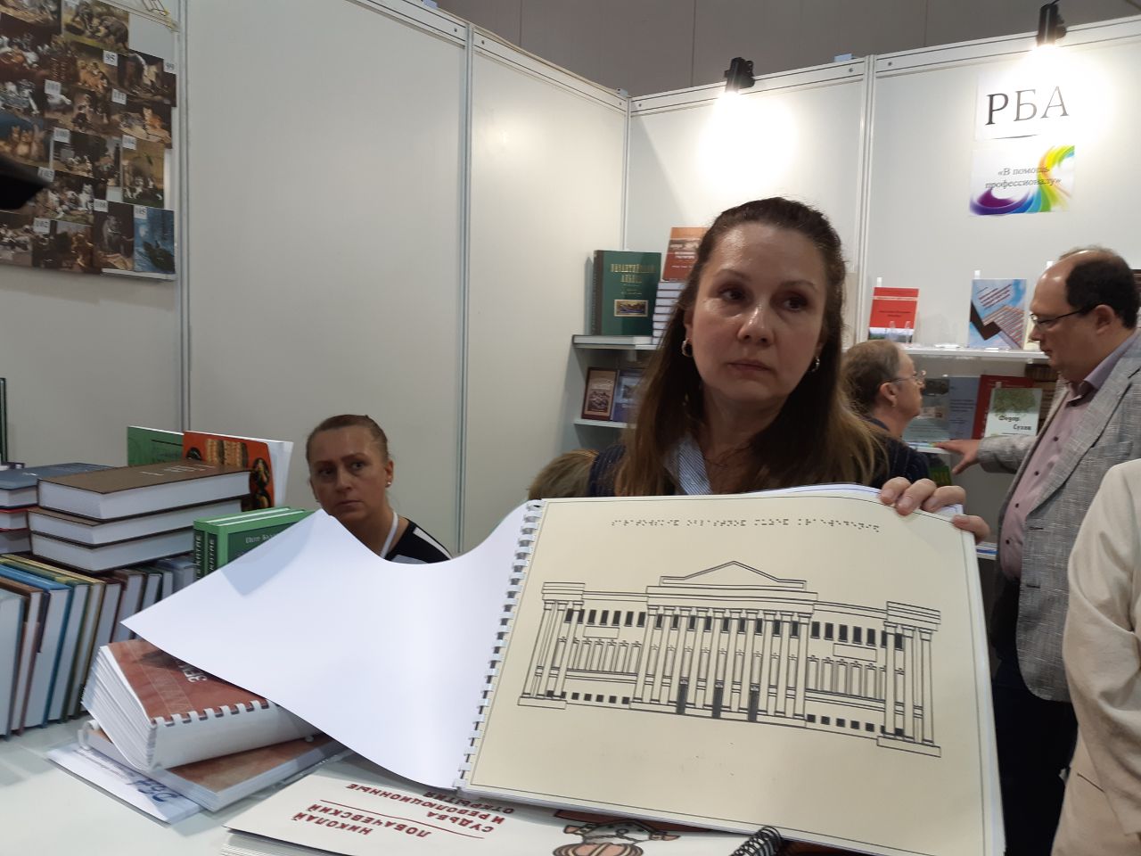 Директор Специальной областной библиотеки для слепых Ольга Ивановна Новикова представила на коллективном стенде Российской библиотечной ассоциации (РБА) многоформатный альбом «Улица Московская».
