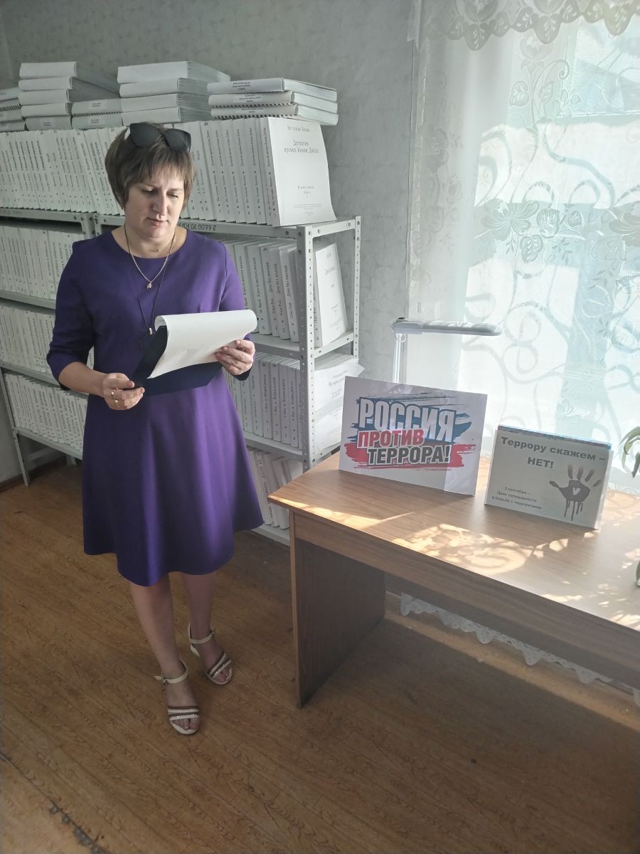 1 сентября в Пугачёвском филиале Областной специальной библиотеки для слепых прошла беседа «Терроризм – зло против человечества», посвящённая Дню солидарности в борьбе с терроризмом. На мероприятии читатели и гости библиотеки познакомились с понятием «терроризм», с правилами поведения в случае возникновения угрозы теракта и обнаружении неизвестных предметов. Ведущий рассказал о террористическом акте в Беслане. Трагедия объединила страну общим горем. Памятная дата стала символом солидарности государства и общества в борьбе с терроризмом. Читатели и гости узнали, что 3 сентября мы вспоминаем жертв всех террористических актов, случившихся в нашей стране, и отдаем дань уважения сотрудникам силовых структур, погибшим при предотвращении терактов и спасении заложников. В завершении мероприятия обсудили вопросы по мерам, направленным на борьбу с терроризмом. Поговорили об ответственности каждого, за спокойствие и порядок в стране, в городе.
