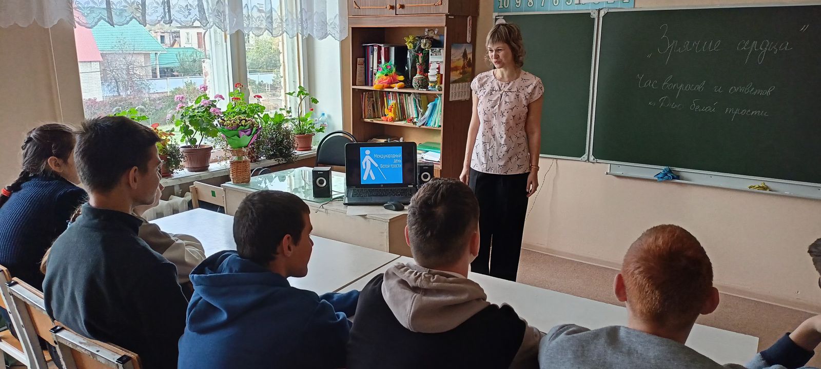 Балаковский филиал Областной специальной библиотеки для слепых подготовил для обучающихся школы-интерната АОП г. Балаково час вопросов и ответов, посвящённый Международному дню белой трости. Мероприятие «Белая трость в центре внимания» познакомило с историей возникновения даты Международного дня белой трости; рассказало о жизни и деятельности известных людей с нарушениями зрения, об их достижениях и признании в мире, который они, не видя, смогли изменить в лучшую сторону, о творчестве, отдыхе, увлечениях и проблемах инвалидов по зрению.