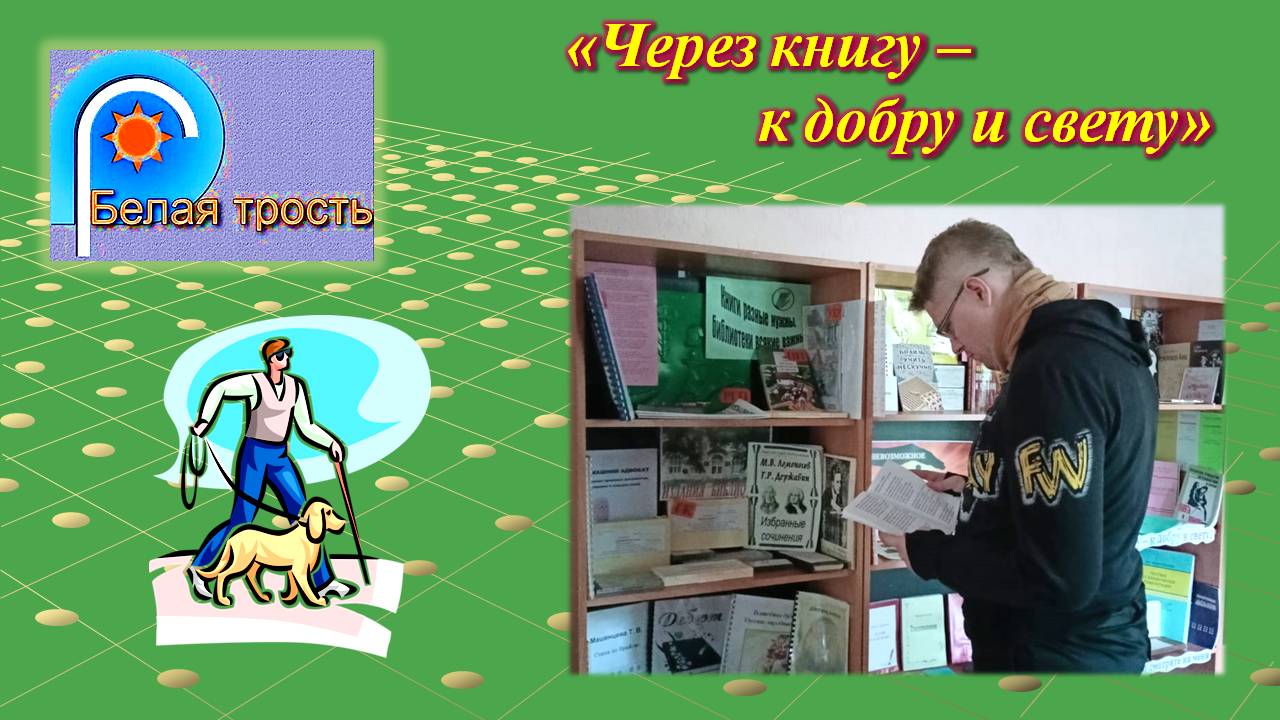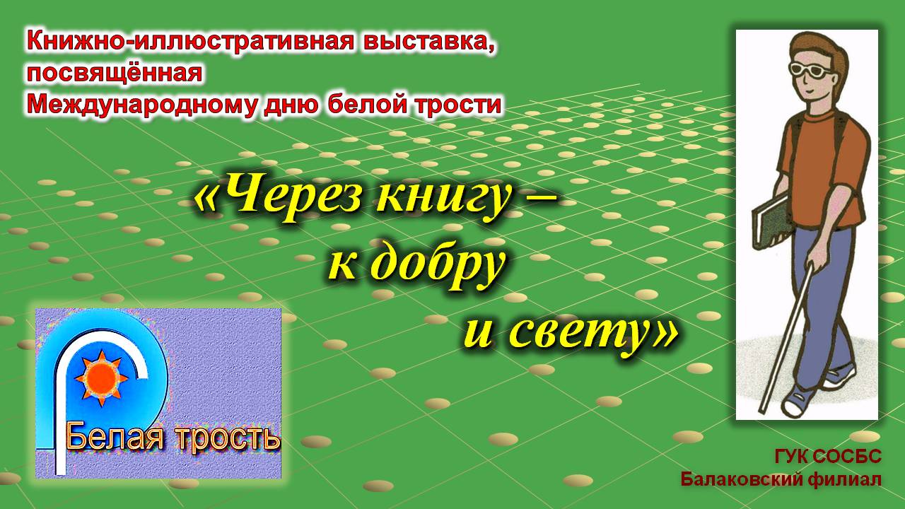 Книжно-иллюстративная выставка, посвящённая Международному дню белой трости «Через книгу – к добру и свету», рассказывает о возникновении Международного дня белой трости, об истории появления белой трости.