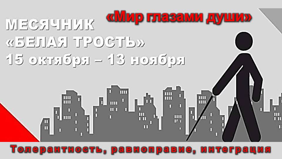 В России с 15 октября (Международный день белой трости) по 13 ноября (Международный день слепых) проходит месячник «Белая трость», призванный привлечь внимание общества к проблемам и особым потребностям незрячих людей, напомнить всем о том, как важно проявлять к ним внимание и заботиться, творить добро, искренне помогать другим.