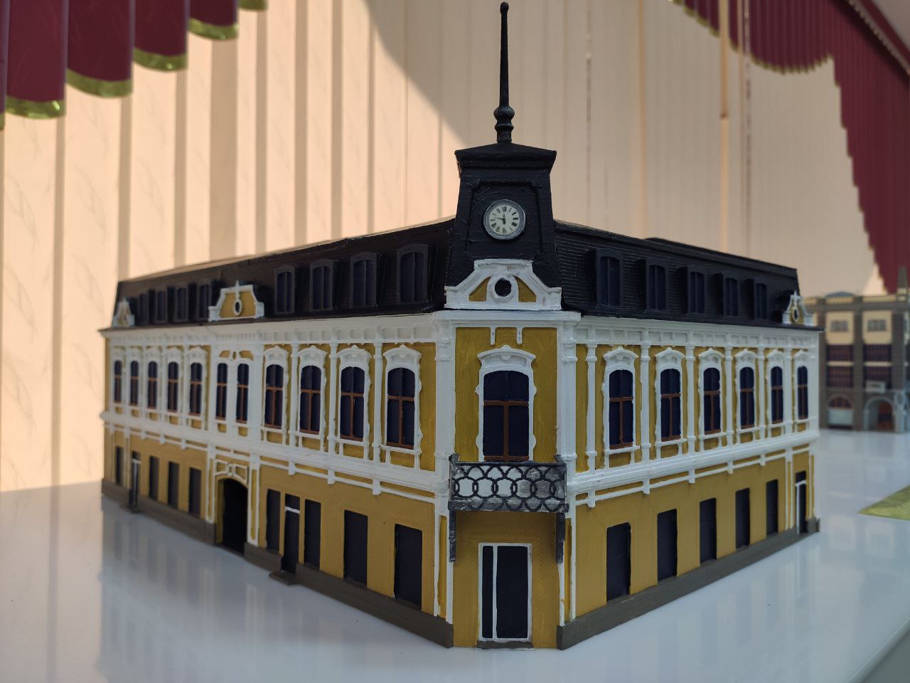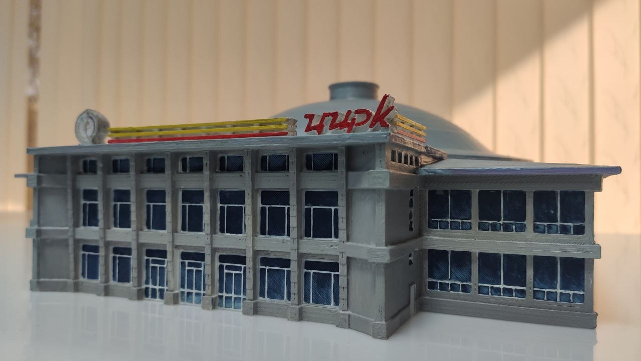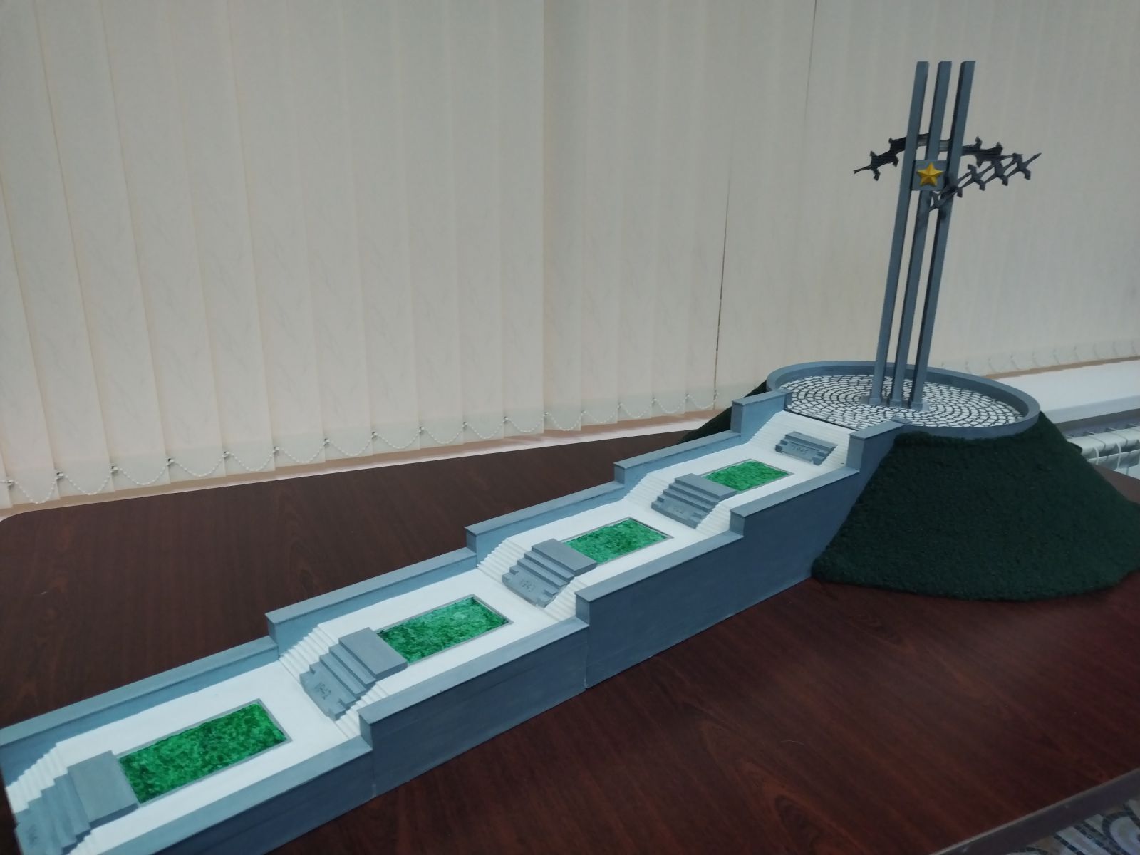3D-макет мемориального комплекса выполнен из белого пластика на 3D-принтере. Масштаб 1:100.
